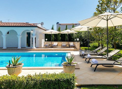 Ihre großzügige Terrasse blickt direkt auf das blaue Meer und lädt zum Träumen bei einem Glas Wein ein. Machen Sie es sich auf der Lounge gemütlich und plaudern Sie vor dieser Kulisse bis in die Nacht hinein.