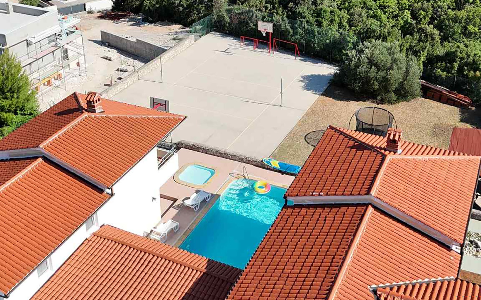 Die Ferienwohnungen CIO172, CIO173, CIO174, CIO175 und CIO176 sind im kleinen Dorf Sveti Lovrec Labinski zu finden. Sei breiten sich in zwei Häusern auf einem Grundstück aus und verfügen über einen gemeinsamen Pool sowie einen kleinen, 4 m² großen Pool für Kinder. Es gibt auch ein gemeinsames Spielfeld für Basketball, Fußball und Badminton. Der nächste Strand liegt im kleinen Ort Tunarica, der eine grüne Oase ist und auch einen kleinen Campingplatz beherbergt. Besuchen Sie die Altstadt von Labin und das touristische Rabac mit einem der schönsten Strände in Istrien. Sehenswert ist auch der Aussichtspunkt Skitaca.
