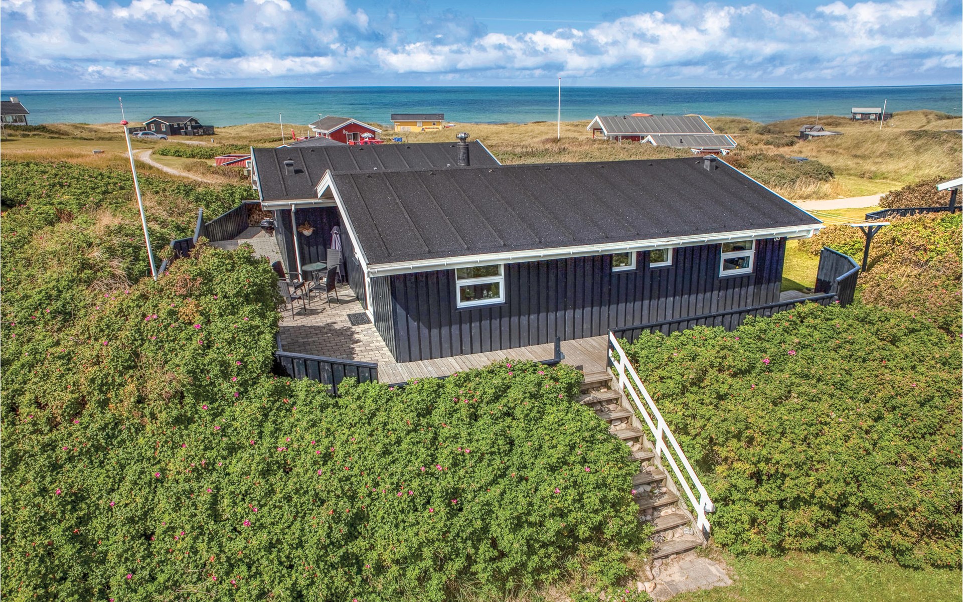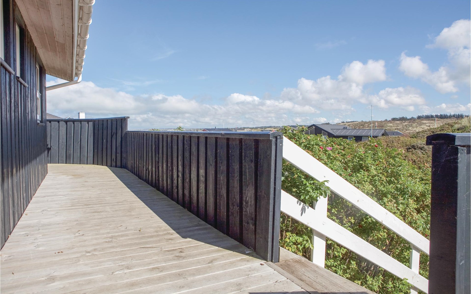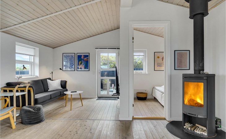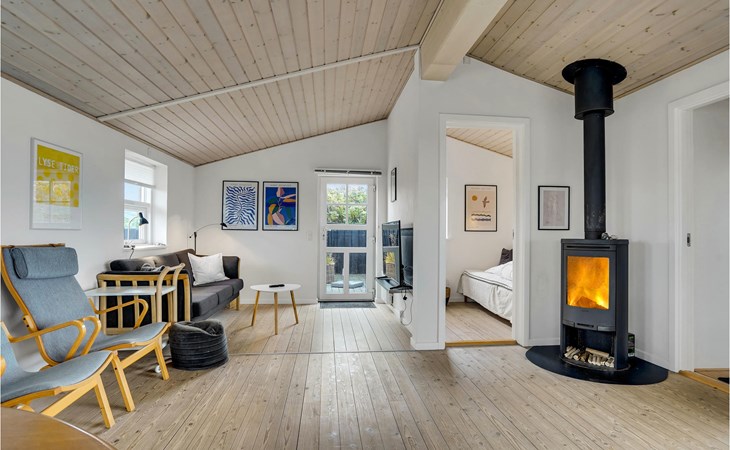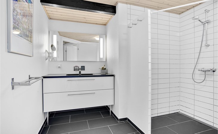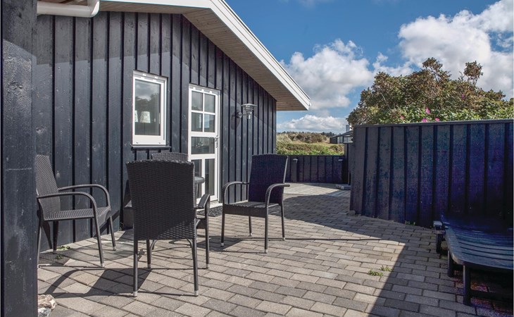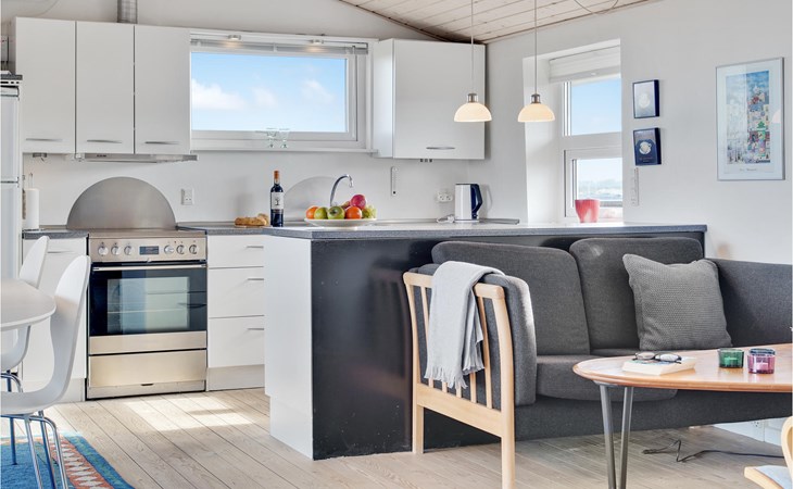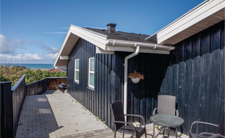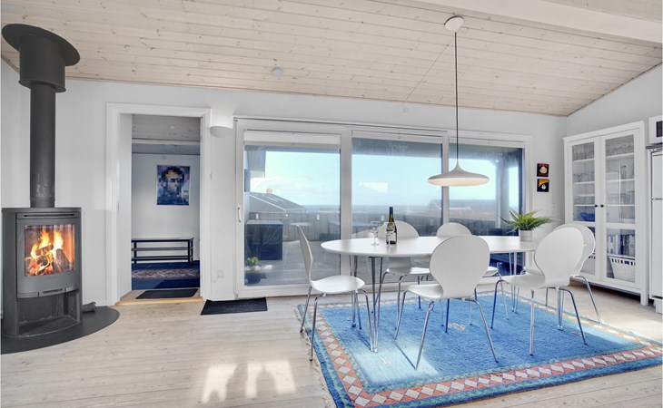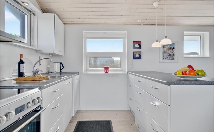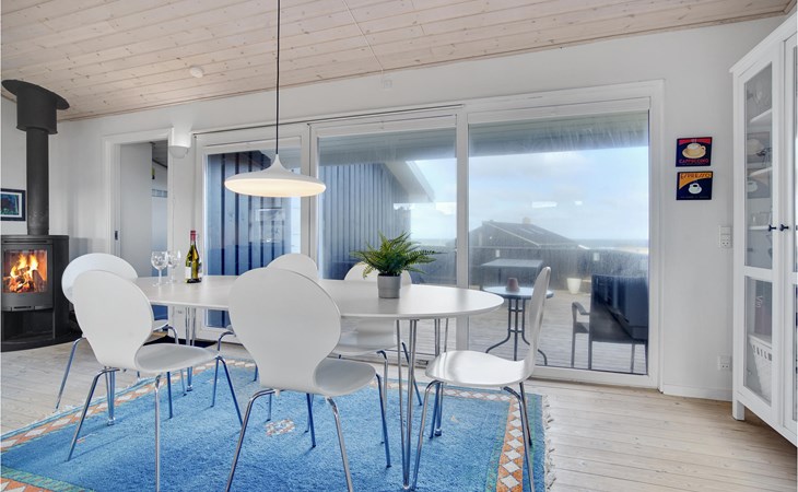 Das phantastische Ferienhaus liegt hoch in den Dünen und bietet Ihnen eine wundervolle Aussicht rundum, auf das Meer und die imposante Landschaft. Es ist durch und durch modern. Es gibt einen geräumigen Eingang mit Garderobe. Das Badezimmer ist hell. Das Herz des Hauses ist das Wohnzimmer mit der offenen Verbindung zur Küche. Das Wohnzimmer hat eine Decke, die bis unter den First offen. Rund um das Haus gibt es schöne Terrassen und gemütliche Ecken. Es ist leicht Windschatten zu finden, auch Schatten und einen Flecken in der Sonne. Sie machen nicht weit von Lønstrup Urlaub, eine sehr gemütliche Stadt mit Kundsthandwerkern, Cafés und dem Skallerup Seaside Resort.