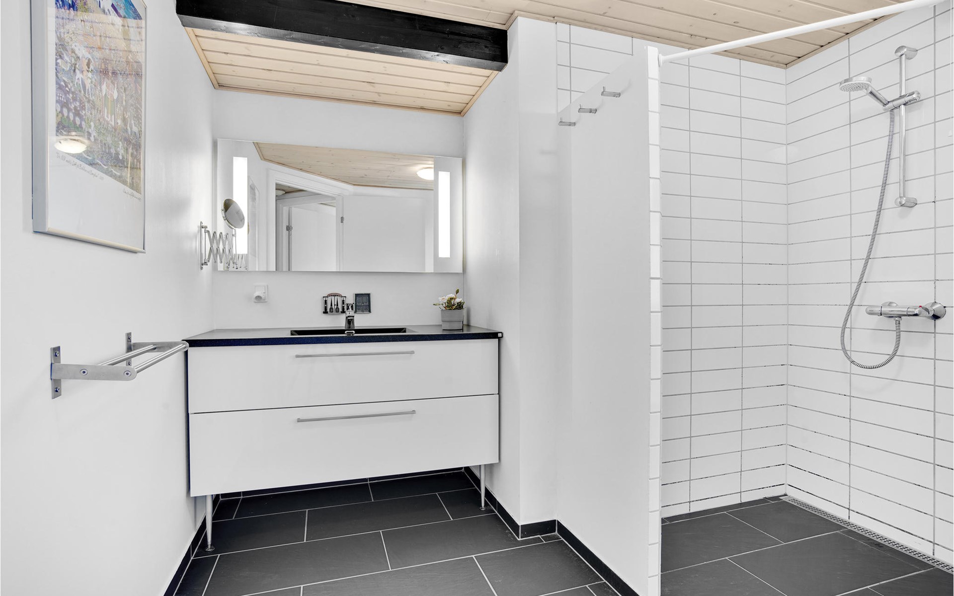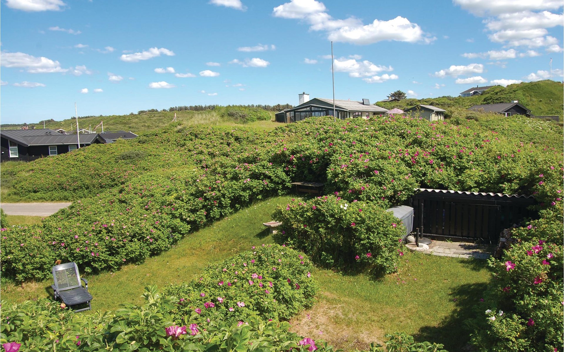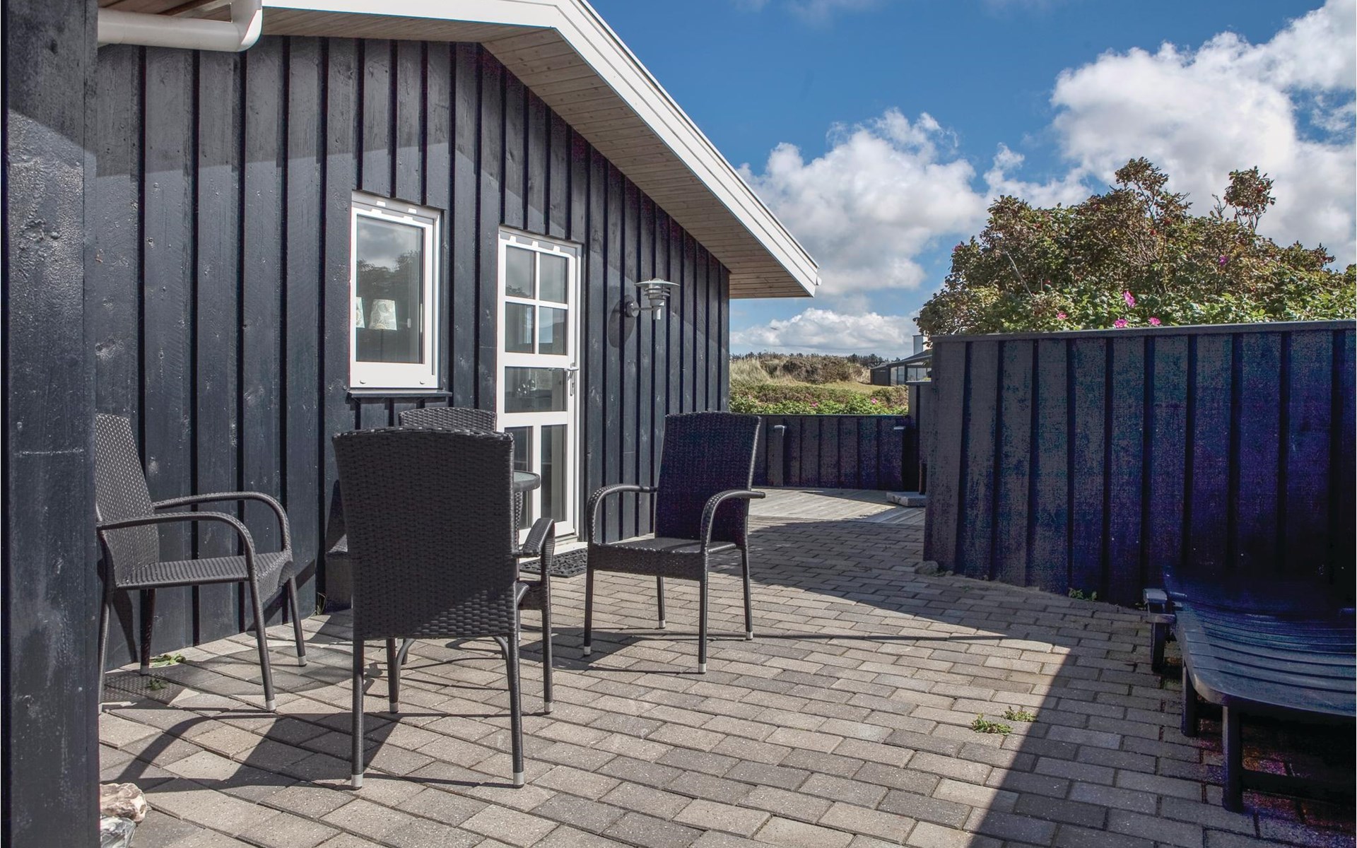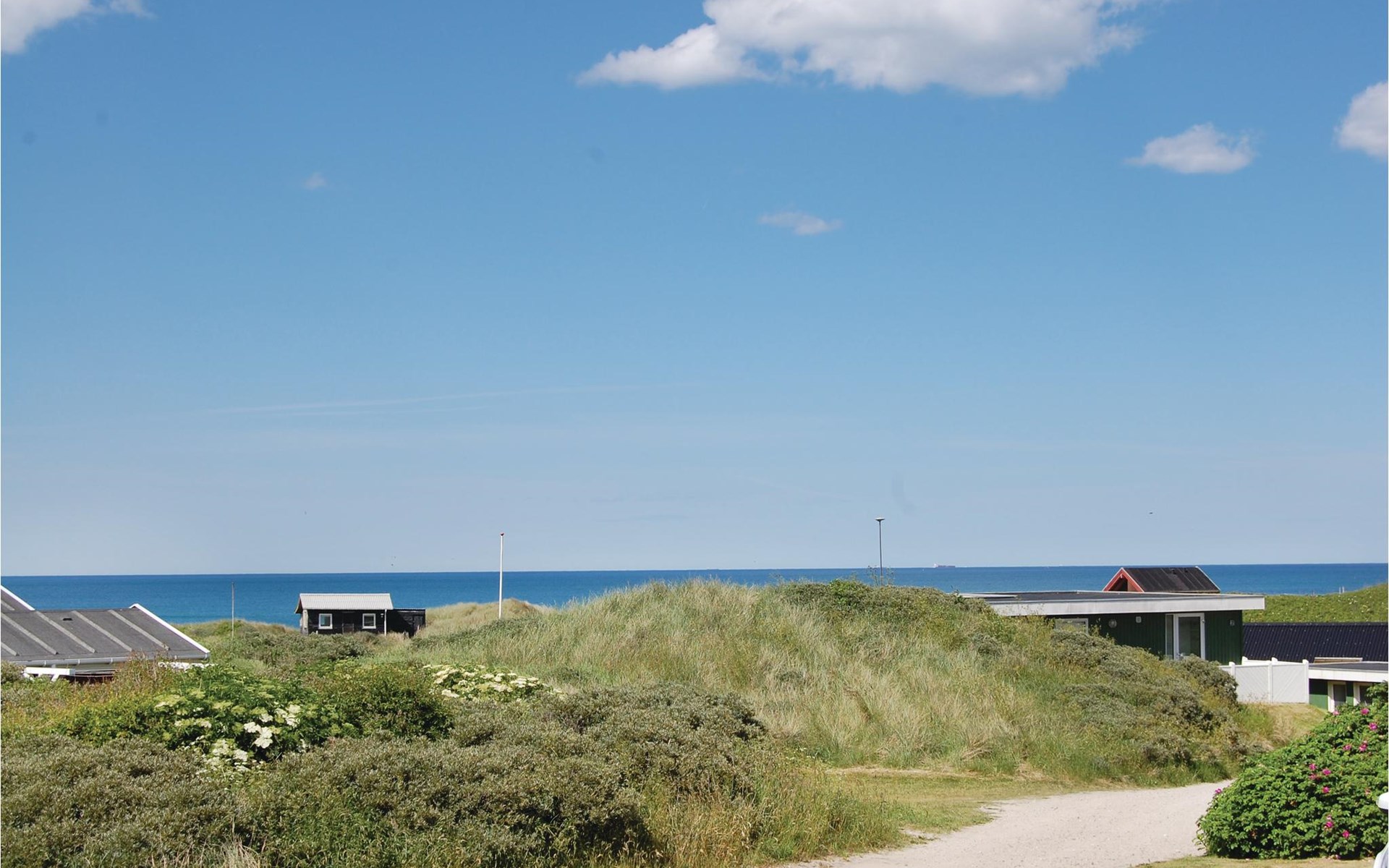 Das phantastische Ferienhaus liegt hoch in den Dünen und bietet Ihnen eine wundervolle Aussicht rundum, auf das Meer und die imposante Landschaft. Es ist durch und durch modern. Es gibt einen geräumigen Eingang mit Garderobe. Das Badezimmer ist hell. Das Herz des Hauses ist das Wohnzimmer mit der offenen Verbindung zur Küche. Das Wohnzimmer hat eine Decke, die bis unter den First offen. Rund um das Haus gibt es schöne Terrassen und gemütliche Ecken. Es ist leicht Windschatten zu finden, auch Schatten und einen Flecken in der Sonne. Sie machen nicht weit von Lønstrup Urlaub, eine sehr gemütliche Stadt mit Kundsthandwerkern, Cafés und dem Skallerup Seaside Resort.