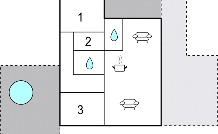 Verbringen Sie einen fantastischen Urlaub in diesem tollen Ferienhaus. Genießen Sie Ihre Ferientage sowohl in den herrlichen Innenräumen als auch der einladenden Terrasse. Der Wohnraum, der durch die riesigen Fenster in natürlichem Licht gehüllt ist, lädt Sie zum gemeinsamen Kochen, Spielen und Entspannen ein. Dafür steht Ihnen eine große Sofalandschaft bereit, auf der Sie Ihre Beine hochlegen können.