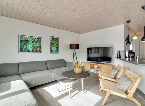 Dieses tolle Holzhaus in Bukkemose liegt nur 1,7 km vom Langeland Golfklub und 500 m von einem Put-and-Take-See. Das helle Haus ist aus geschmackvollen Materialien gebaut und hat eine offene Dachkonstruktion im Wohnzimmer. Fliesenböden im Wohnzimmer, in der Küche und in den Bädern sowie Holzböden in den Schlafräumen. Bodenheizung überall. Das eine Bad verfügt über Whirlpool und Sauna. Es ist hoch gelegen und von der 66 m2 großen Terrasse sind 26 m2 überdacht. Gute Angelverhältnisse in der Gegend und am Haus eine Einrichtung für Angler.