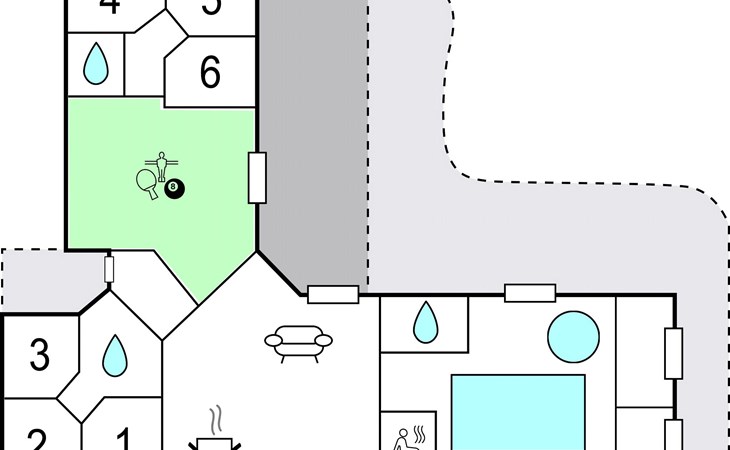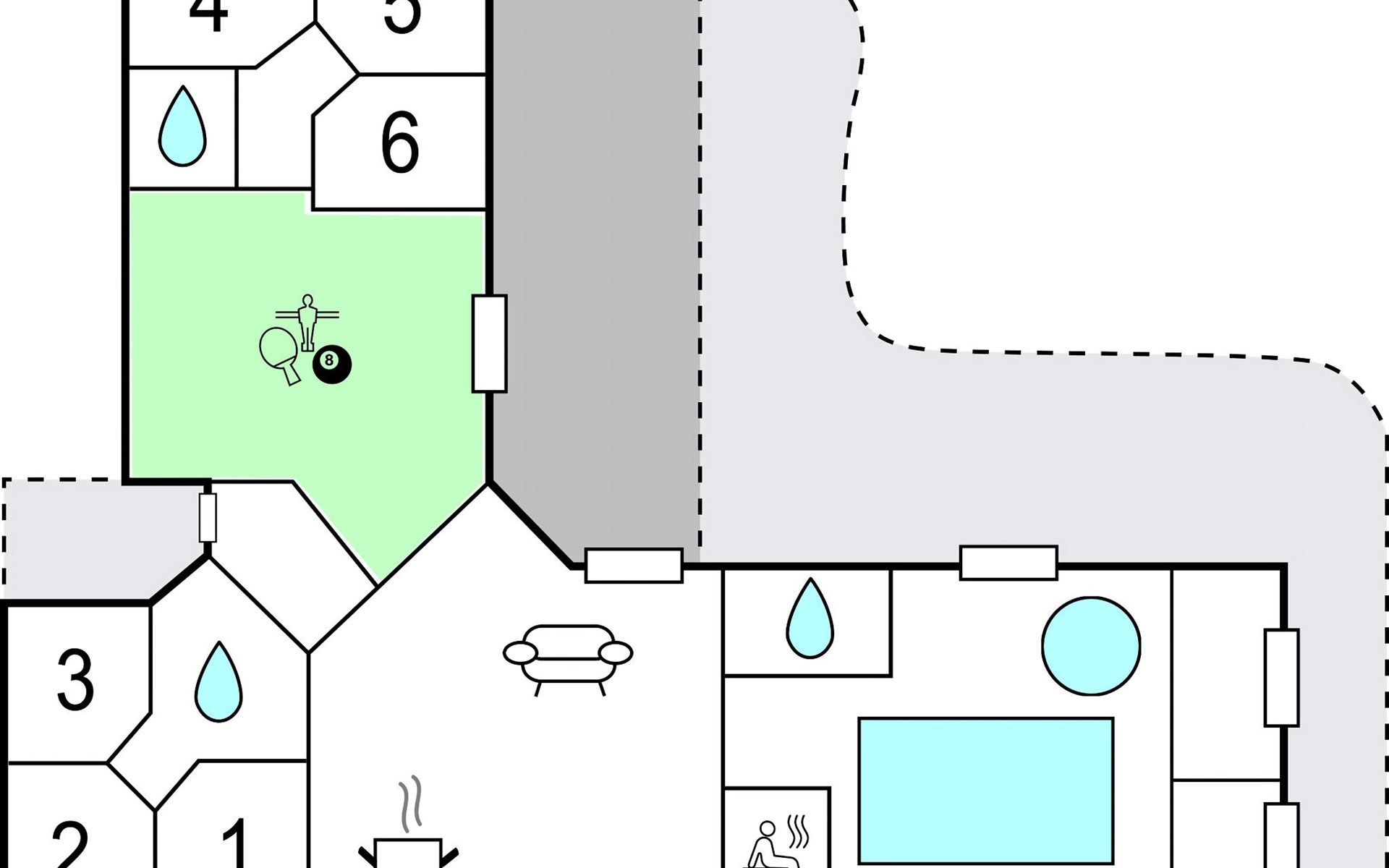 Dieses fantastische Haus bietet Platz für mehrere Familien oder eine größere Gruppe von Freunden. Im Inneren des Hauses werden Sie sich direkt heimisch fühlen, denn die Räume sind großzügig und komfortabel gestaltet. Die Decken sind hoch und die Wohnküche bietet einen sehr behaglichen Kaminofen. Hier schmeckt der Kaffee besonders gut, und die Urlaubslektüre lässt Sie die Zeit vergessen. Im Aktivitätsraum werden Groß und Klein viele gesellige Stunden verbringen können - Billard, Tischtennis und Tischfußball stehen immer zur Verfügung. Der Wellnessbereich mit Pool, Whirlpool und Sauna lädt zum Entspannen und Genießen ein und bietet auch kinderfreundliche Einrichtungen.