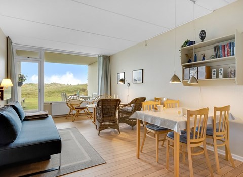Vom Wohnzimmer aus haben Sie Zugang zu einer schönen Holzterrasse mit Outdoormöbeln, von denen Sie die Aussicht auf das Meer genießen können, und zu einem großen Gemeinschaftsgarten und Spielplatz direkt am Haus. Sie haben zudem Zugang zu einer gemeinsamen Waschmaschine, einem Trockner und einem beheizten Außenpool.