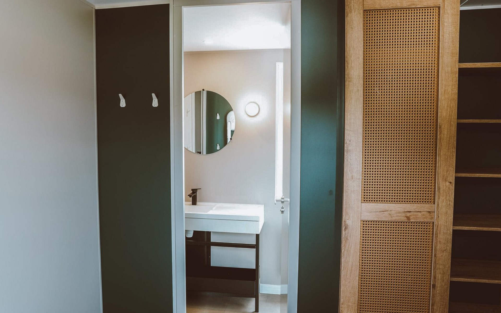 Für noch mehr Komfort kannst du die Tiny Lodge wählen, die am besten zu deinen Wünschen passt. Liebst du Ruhe und eine wunderschöne Aussicht? Dann buche bevorzugt die Tiny Lodge Gelb 124 oder 125, die an einem ruhigen Ort im Park liegt. Wenn du lieber zentral im Park bleiben möchtest, in der Nähe des Gastronomiebereichs und des Schwimmbads, sind die Tiny Lodge Gelb 53, 54 oder 55 ideal für dich. Die Tiny Lodge bietet außerdem erstklassige Annehmlichkeiten wie eine Nespresso-Kaffeemaschine, eine voll ausgestattete Küche mit 4-flammigem Gasherd, Mikrowellenkombination und Kühlschrank sowie eine gemütliche Sitzecke mit Smart TV. Genieße die frische Luft auf der überdachten Veranda, wo du dich entspannen und die Natur um dich herum genießen kannst.