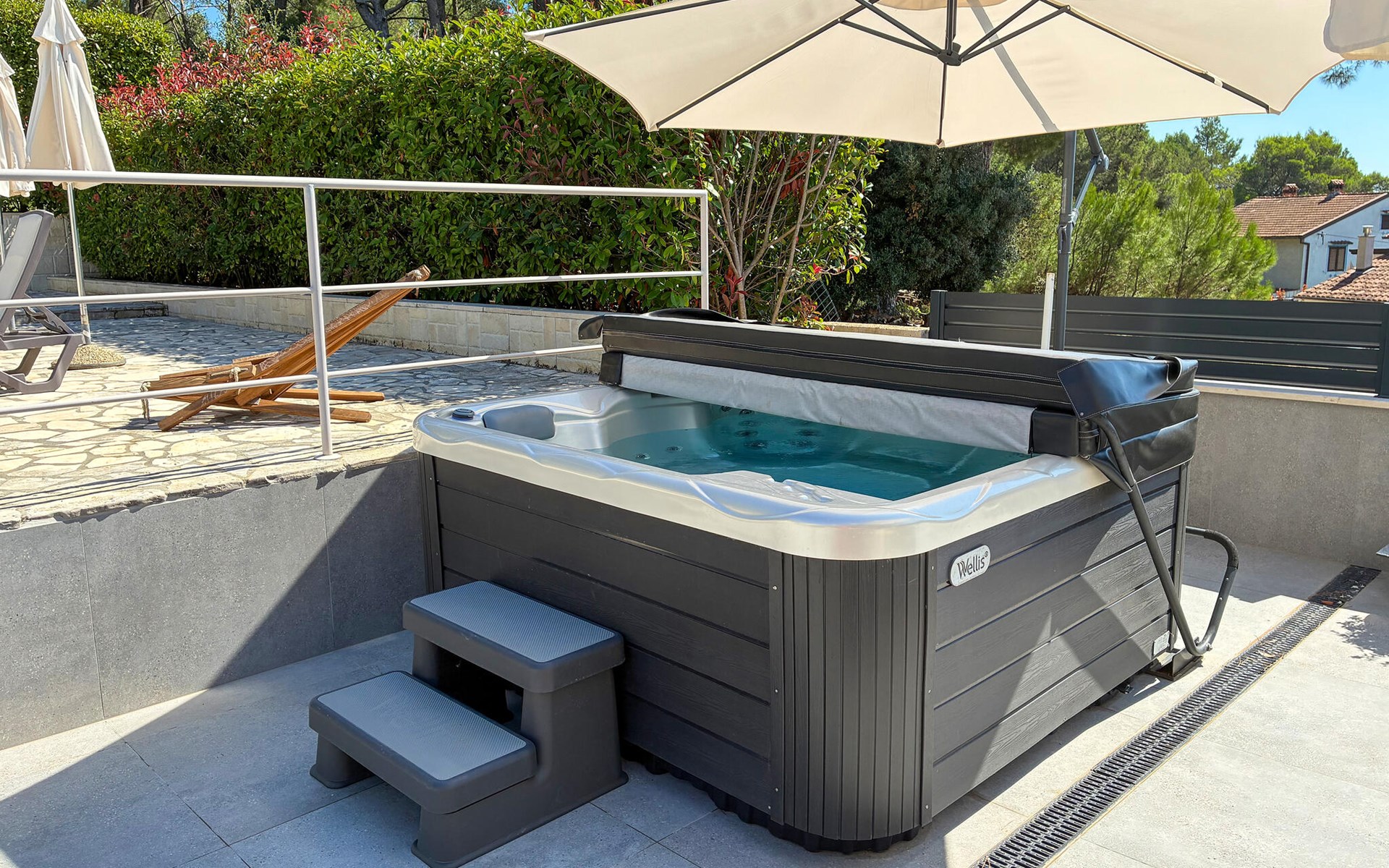 Das Haus verfügt über gemeinsamen Pool von 36 qm, großer überdachten Terrasse mit Grill und Esstisch und einem Parkplatz für jede Ferienwohnung.