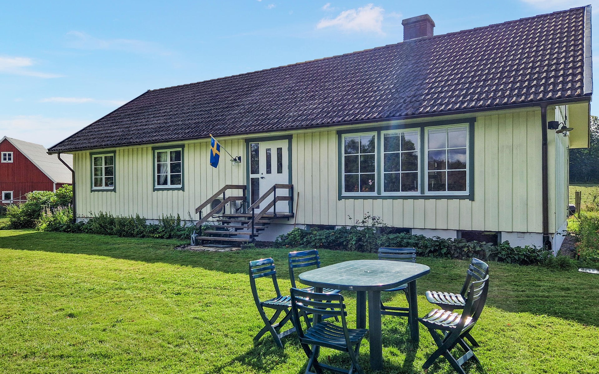 Entspannen Sie auf der schönen Terrasse und lassen Sie im weitläufigen Garten die friedliche Atmosphäre auf sich wirken. Nutzen Sie die beiden Boote zum Angeln und Rudern auf dem nahegelegenen See. In der Nachbarschaft sorgen Hühner, Pferde und Weidetiere für ein authentisches, ländliches Ambiente.