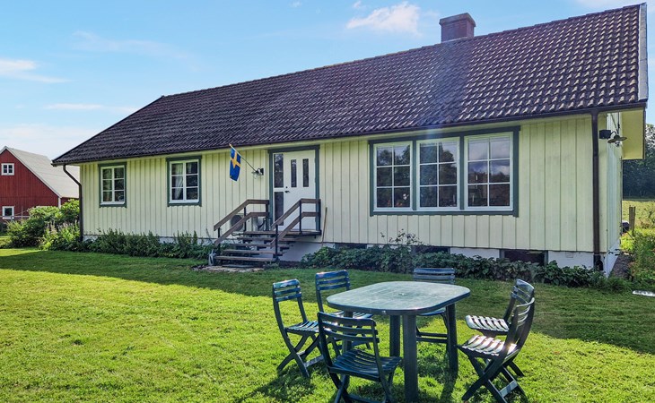Dieses helle und mit viel Liebe zum Detail eingerichtete Ferienhaus begrüßt Sie mit echter Wohlfühlatmosphäre. Kochen Sie gemeinsam in der geräumigen, gut ausgestatteten Küche und speisen Sie mit Blick in die Naturlandschaft – vielleicht schauen hier Kraniche, Hasen, Füchse oder Hirsche vorbei. Entfachen Sie den Kaminofen, nehmen Sie auf dem Sofa Platz und genießen Sie die Aussicht auf den Gårdsjön und den kleinen Badeteich,