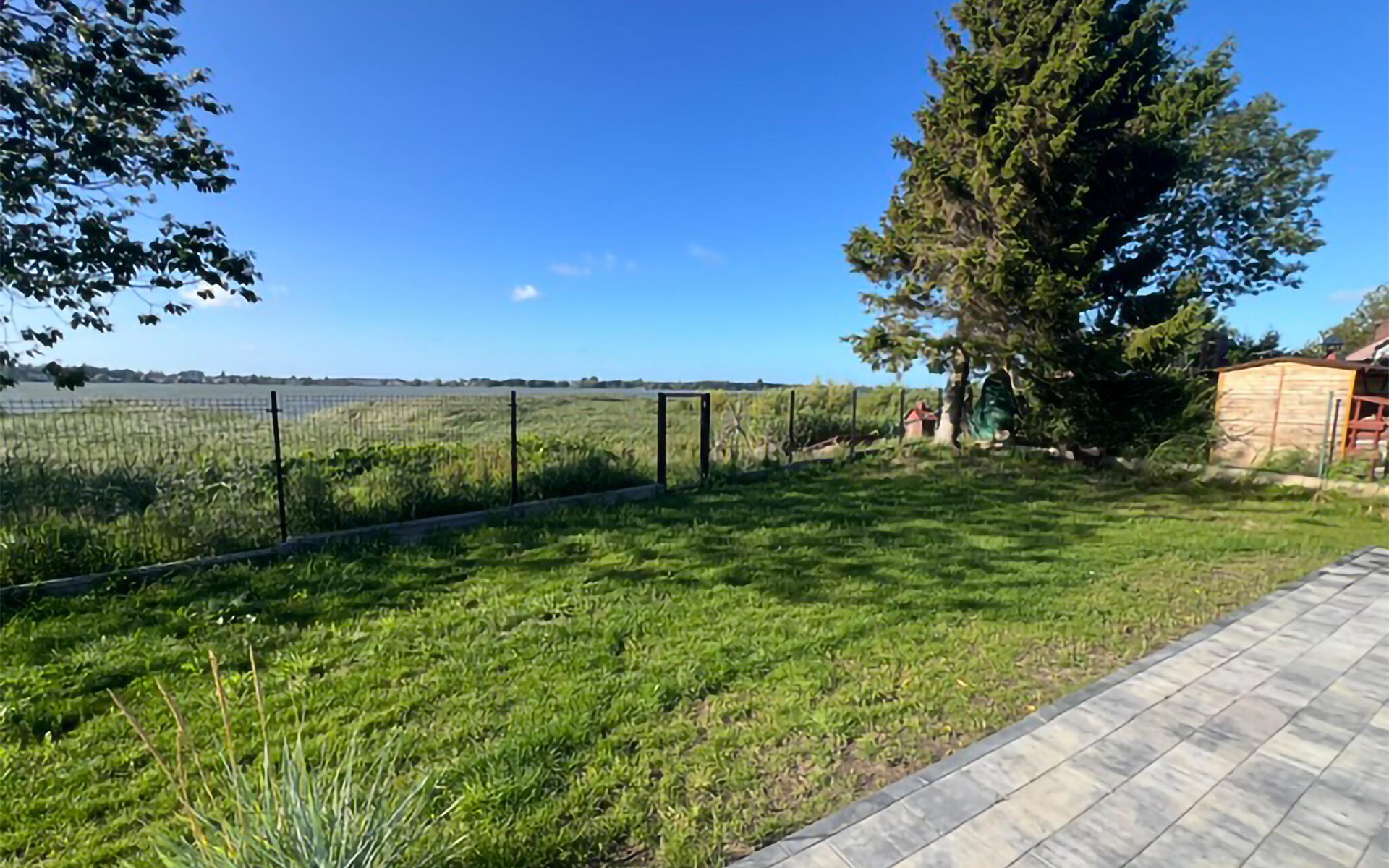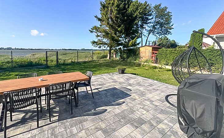 Auf der offenen Terrasse können Sie die friedliche Atmosphäre bei einem Frühstück oder einem stimmungsvollen Grillabend auf sich wirken lassen. Beobachten Sie Ihre Kinder beim Spielen mit dem Hund im Garten und gönnen Sie sich abends ein Glas Wein.