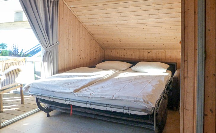 Die großzügige Terrasse bietet einen herrlichen Platz an der Sonne. Hier können Sie entspannen, während die Kinder im Garten spielen. Im Obergeschoss finden Sie die offene Schlaf- und Spielgalerie. Von hier aus haben Sie Zugang zur überdachten Loggia. Diese eignet sich ideal um den Sonnenuntergang zu genießen.