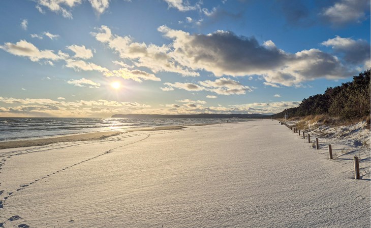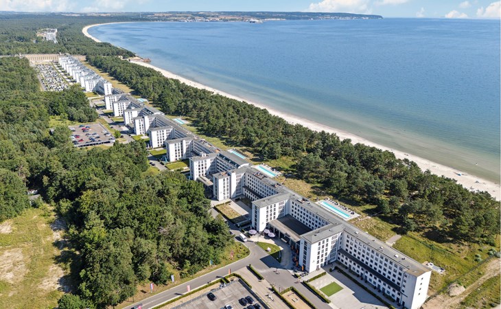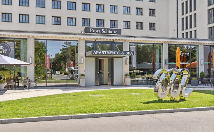 Die modernen Apartments liegen direkt am 7 km langen Traumstrand der Prorer Wiek, der durch die nahen Kreidefelsen ein geradezu karibisches Flair mit glasklarem Wasser hat. Entlang der Strandpromenade entstehen Cafés, Restaurants und kleine Geschäfte des täglichen Bedarfs. So können Sie in der hauseigenen Prora Solitaire Bar den Cappuccino am Morgen oder den Sundowner nach einem schönen Tag am Strand genießen.