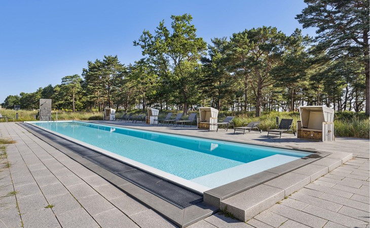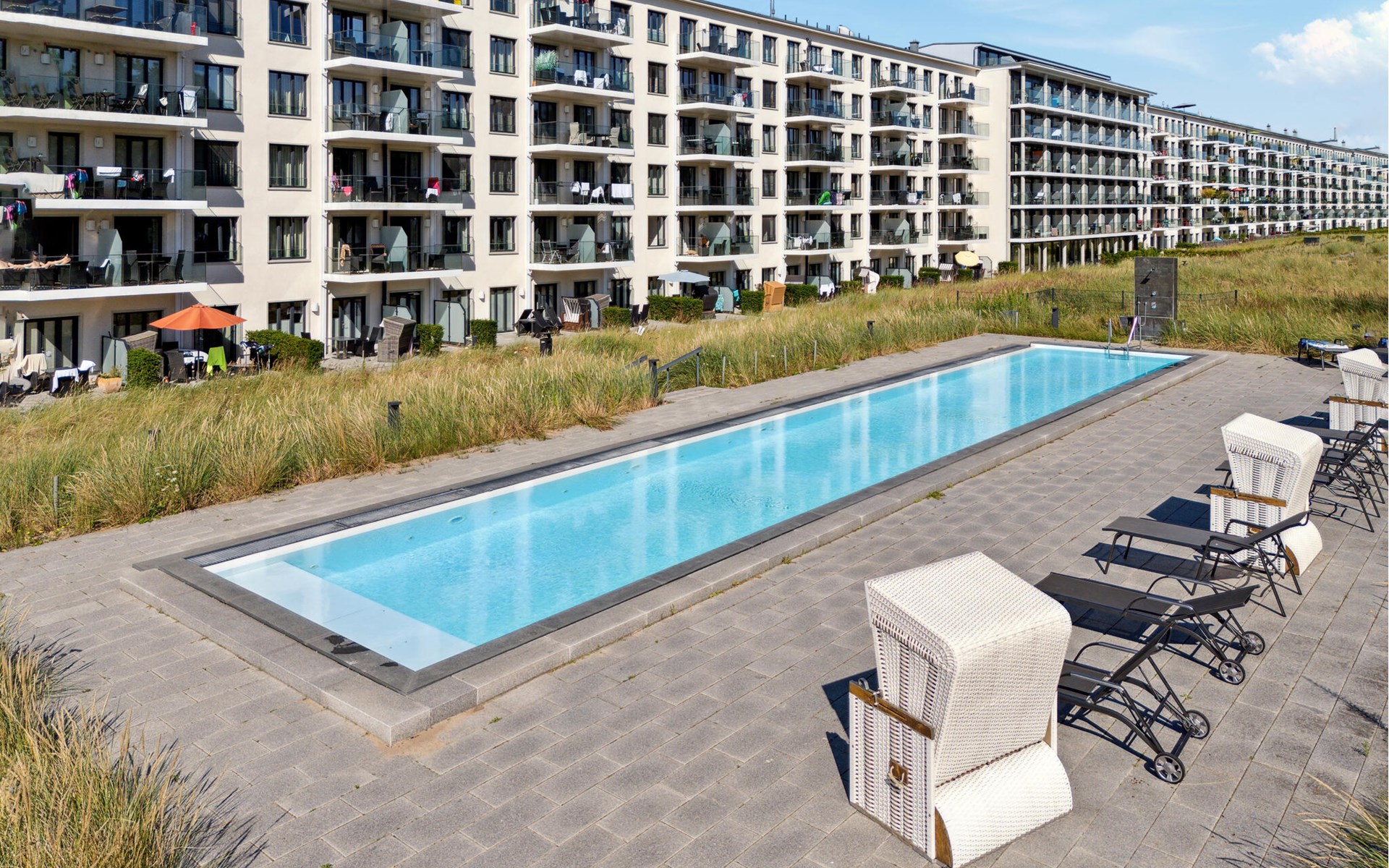 Vor den Ferienwohnungen in Prora Solitaire erstreckt sich eine parkähnliche Gartenlandschaft mit Außenpool, Aufenthaltsbereichen und einheimischer Flora und Fauna. Der Garten steht exklusiv den Gästen von Prora Solitaire zur Verfügung, ein kleiner Kiefernwald schirmt ihn vom Strand ab und sorgt für Privatsphäre. Prora Solitaire - eine Oase der Ruhe für Körper, Geist und Seele das ganze Jahr! Für Elektrofahrzeuge stehen Ihnen vier Ladestationen mit einer Ladeleistung von jeweils 22,5 kW zur Verfügung. Die kostenpflichtigen Ladestationen befinden sich im Parkhaus und sind ausschließlich für Hotelgäste zugänglich.