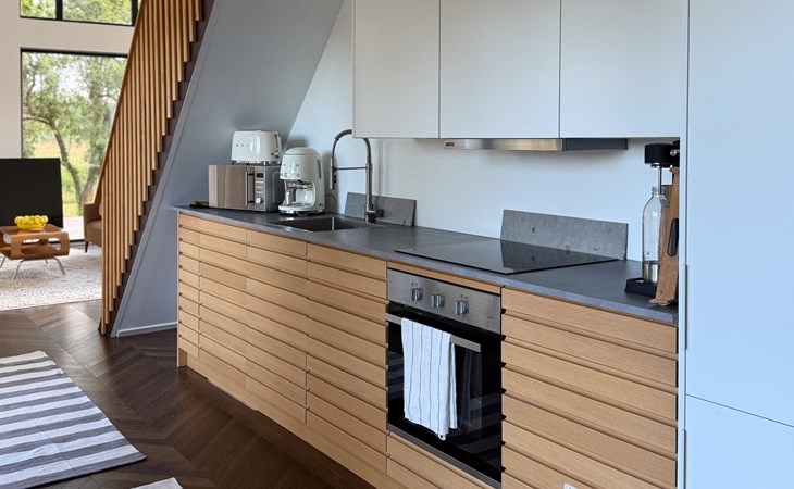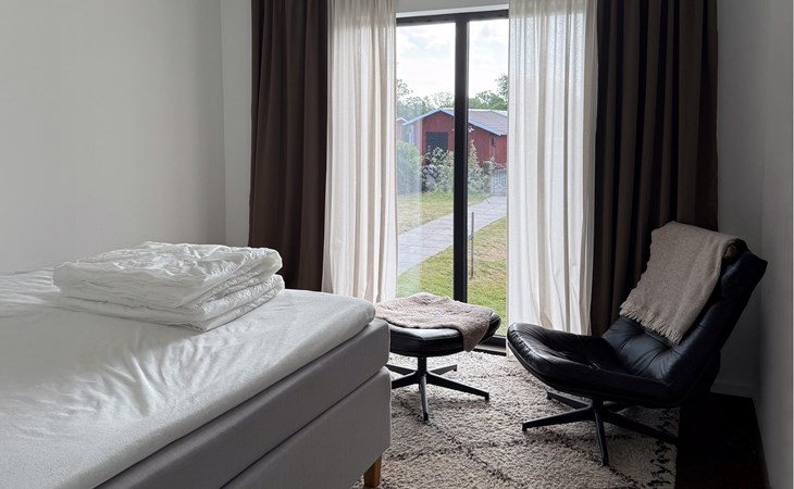 Umgeben von Feldern und Wiesen empfängt Sie und Ihre Familie dieses komfortable Ferienhaus. Die Atmosphäre des Hauses wird durch die bodentiefen Fenster geprägt, die das gesamte Haus in ein natürliches Licht eintauchen. Die hochwertigen Möbel laden Sie zum Entspannen ein und bieten Ihnen schöne Plätze zum Kochen, Essen und Spielen. Das Haus umgibt von fast allen Seiten eine große Holzterrasse, die Sie zum Sonnen und Verweilen einladen. Leckere Grillabende können zudem Ihre abwechslungsreichen und aktiven Tage auf der Insel abrunden.