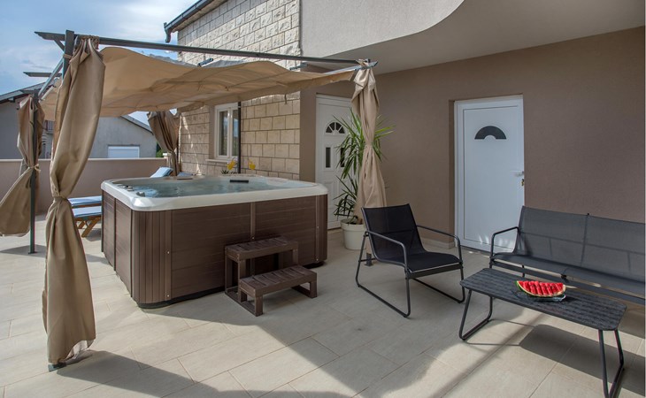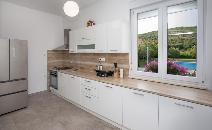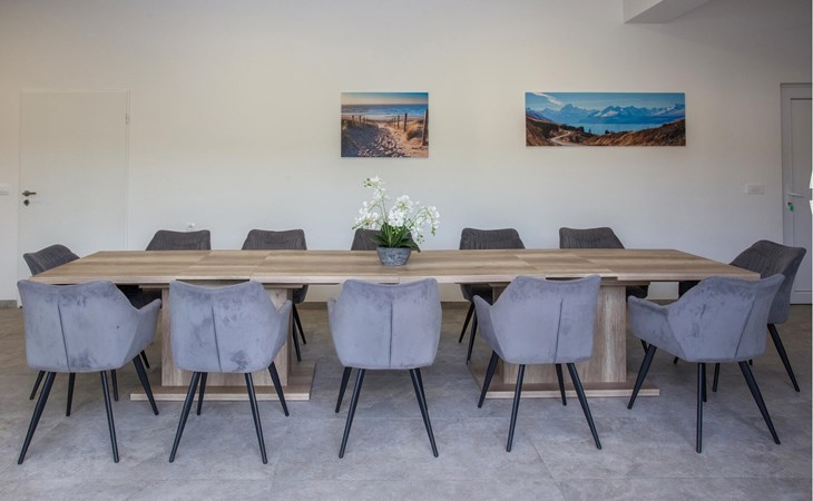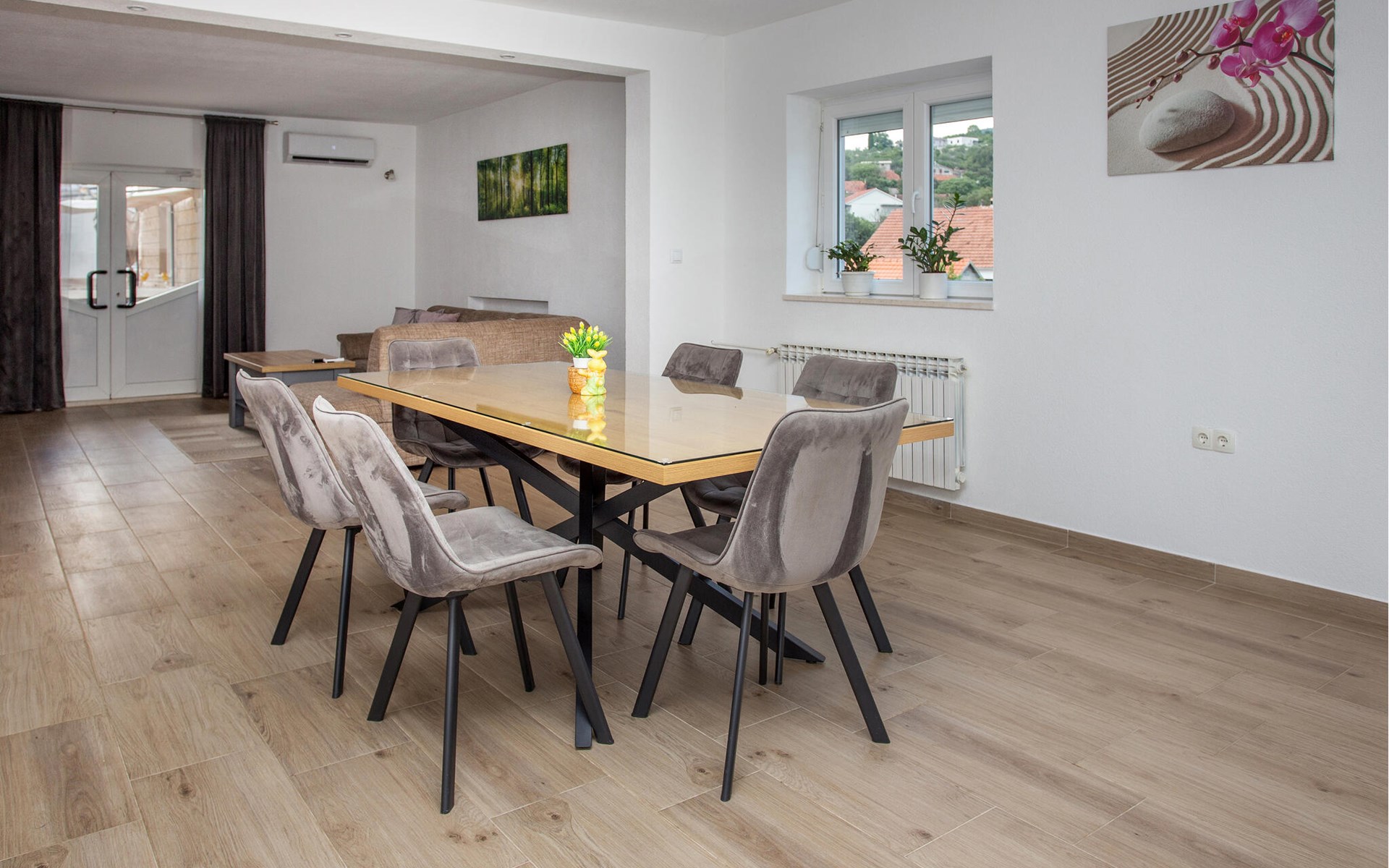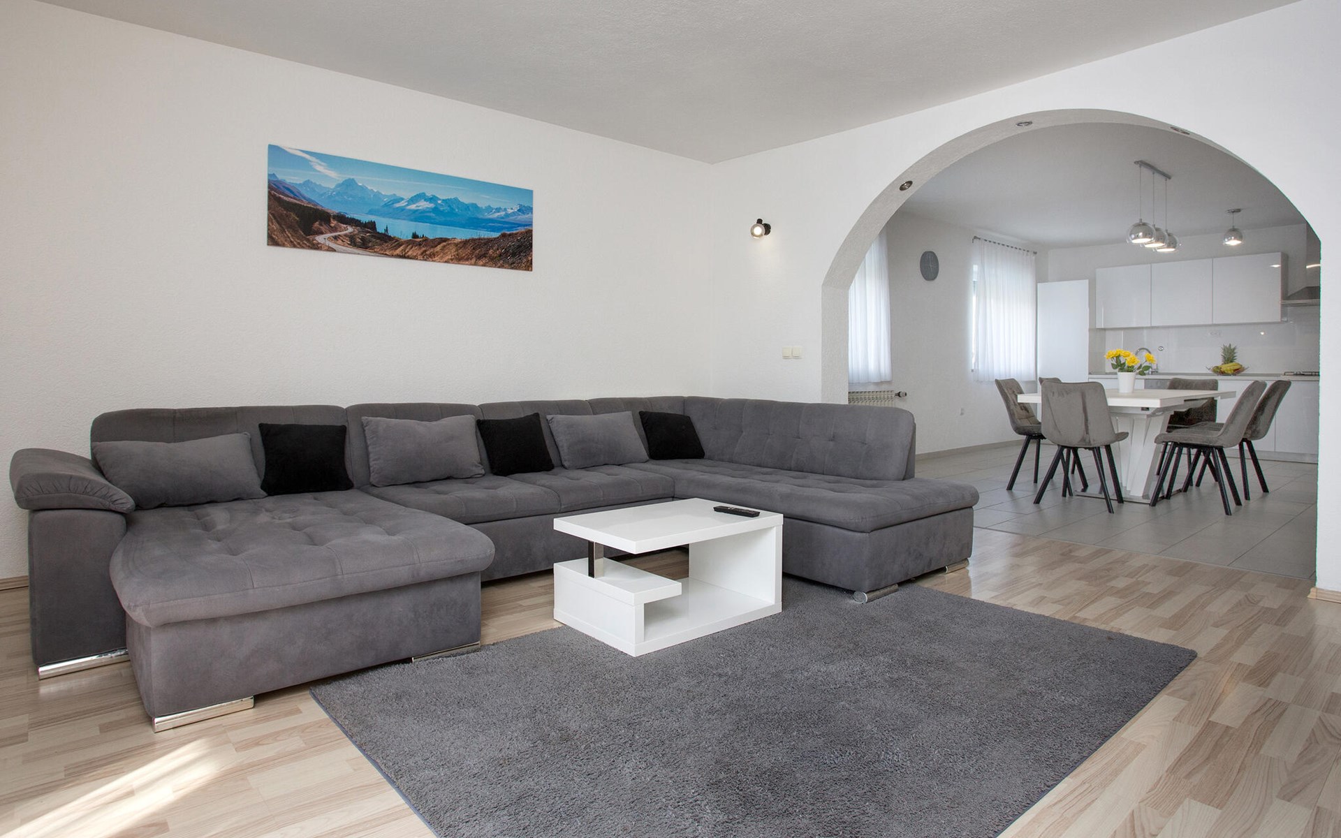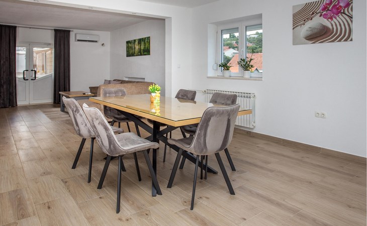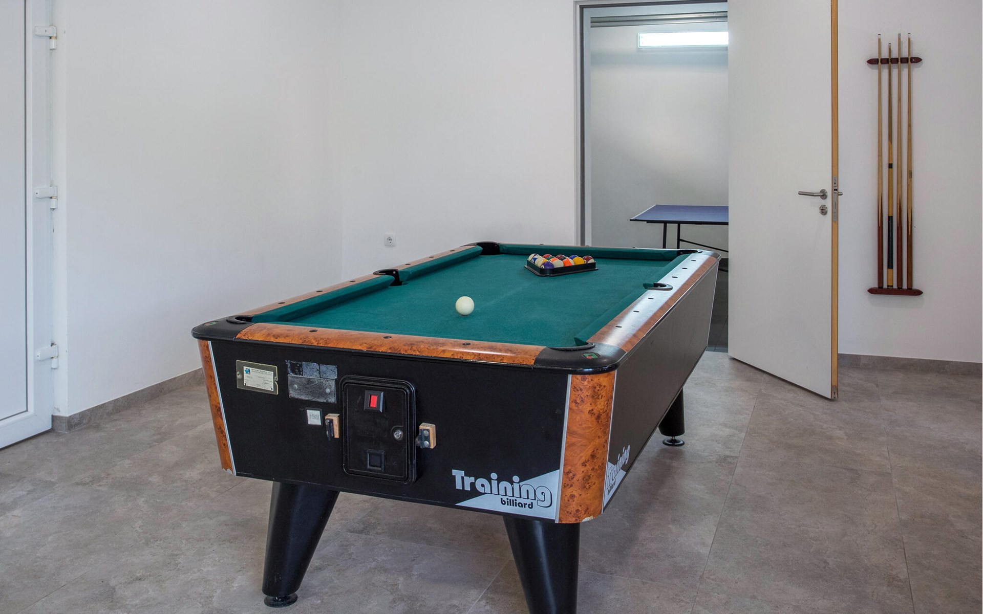 Dieses schöne, dreistöckige Ferienhaus befindet sich in Glavni Donja, nicht weit von Imotski entfernt. Es ist geräumig und geschmackvoll eingerichtet und eignet sich ideal für einen Urlaub mit mehreren Familien oder Gruppen von Freunden. Unterhalten Sie sich im Aktivitätsraum beim Dart oder Tischtennis oder spielen Sie eine Runde Billard - hier wird Ihnen nicht langweilig.
