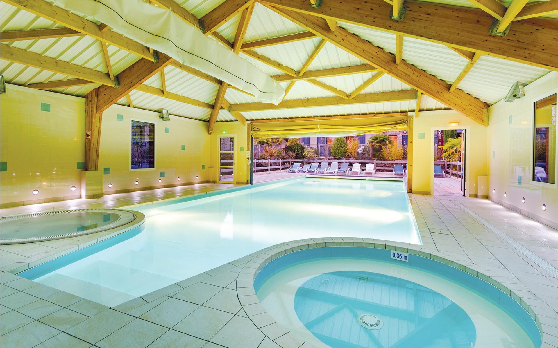 Die Terrasse lädt dazu ein, die Sonne mit Blick auf die Umgebung zu genießen. Schlendern Sie zum Pool, erfrischen Sie sich an heißen Tagen und entspannen Sie anschließend im Liegestuhl. Sie können auch das beheizte, überdachte Schwimmbad in der Anlage nutzen. Die Nutzung der Sauna ist einmal pro Woche pro Anmietung kostenfrei, genutzt werden, zusätzliche Sitzungen buchen Sie gegen Gebühr. Je nach Verfügbarkeit sind der Miete sind Bücher, Brettspiele, Bügeleisen und Bügelbrett, Haartrockner, Meeresfrüchte-Utensilien, Raclette-Maschinen, Pierrades und Schnellkochtöpfe können ausgeliehen werden.