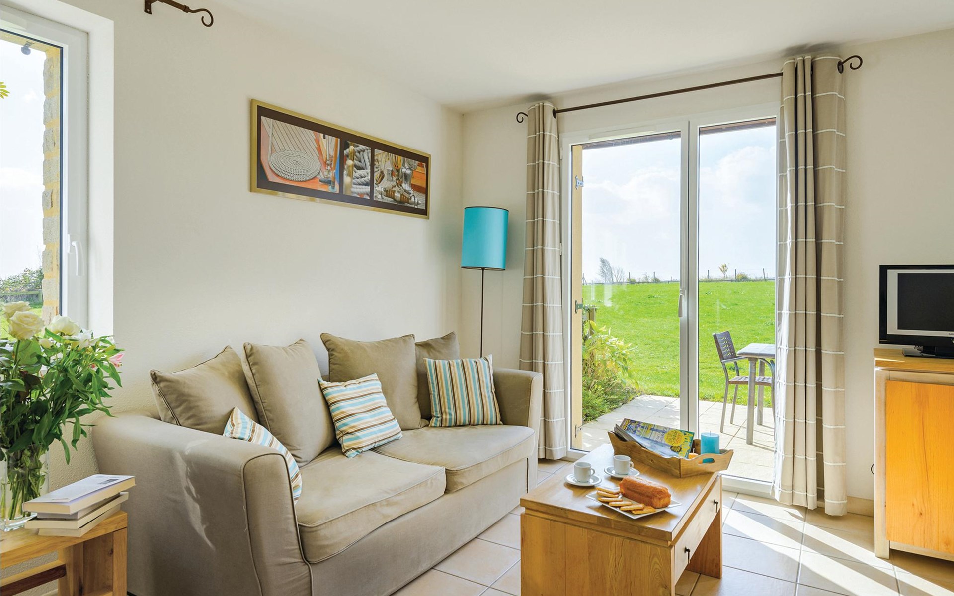 Das Haus begrüßt Sie in einem Ferienpark mit typisch bretonischer Architektur, die Stein und Schiefer kombiniert. Die Residenz mit Blick auf den Port de la Houle öffnet sich zu herrlichen Grünflächen mit Blick auf das Meer. In den hellen, modern und wohnlich möblierten Räumen können Sie mit Ihren Lieben eine entspannte Auszeit vom Alltag verbringen. Freuen Sie sich auf gemeinsame Mahlzeiten am langen Esstisch und gemütliche Abende auf dem Sofa nach einem erlebnisreichen Tag.