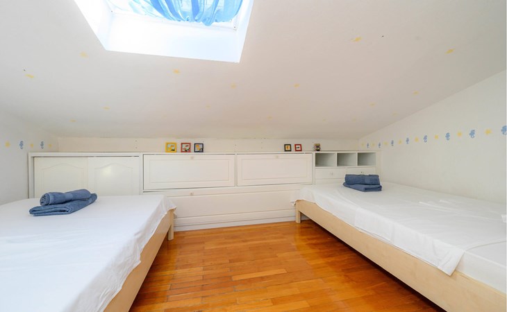 Kommen Sie mit Ihrer Familie nach Klek und genießen einen erholsamen Urlaub in dieser geräumigen Ferienwohnung auf zwei Etagen. Hier finden Sie alles vor, was Sie für einen unbeschwerten Urlaub in Kroatien brauchen. Freuen Sie sich auch auf die große Terrasse und den einladenden Garten, der Ihnen allerhand Platz und Ihren Kindern Spielmöglichkeiten bietet. Genießen Sie Ihre Mahlzeiten im Freien und laufen hinab zu Ihrem privaten Haus-Sonnendeck, von dem Sie direkt ins Wasser springen können.
