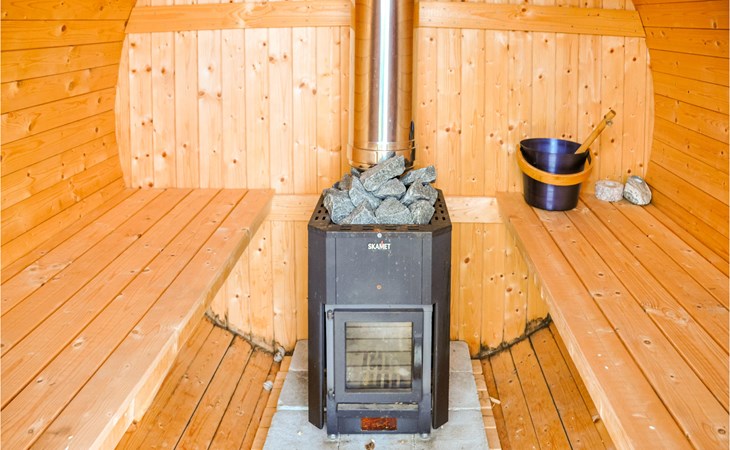 Auf der großen Terrasse befindet sich ein holzbefeuerter Whirlpool und im Garten gibt es eine holzbefeuerte Sauna, sodass Sie wunderschöne Wellness-Momente im Urlaub erleben können.
