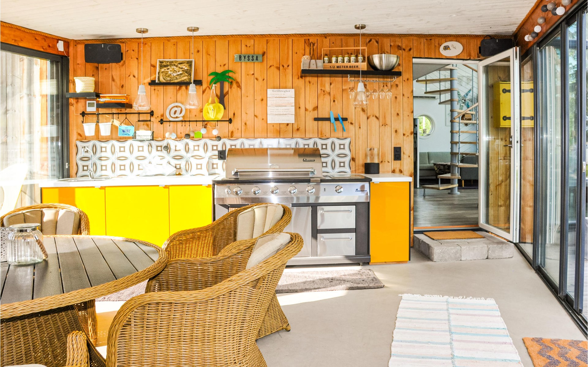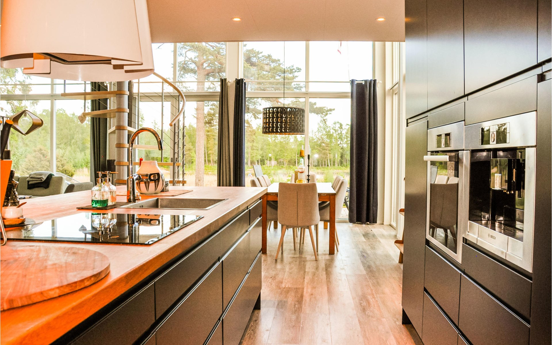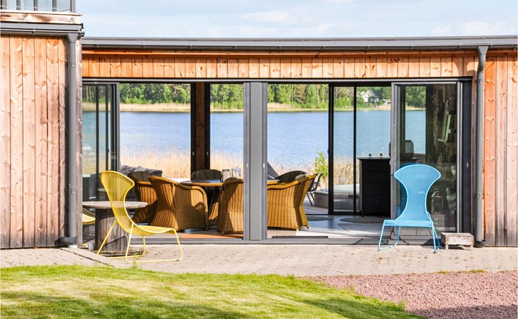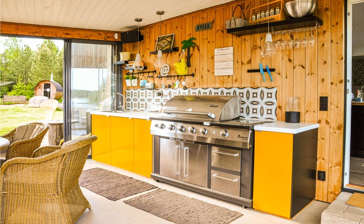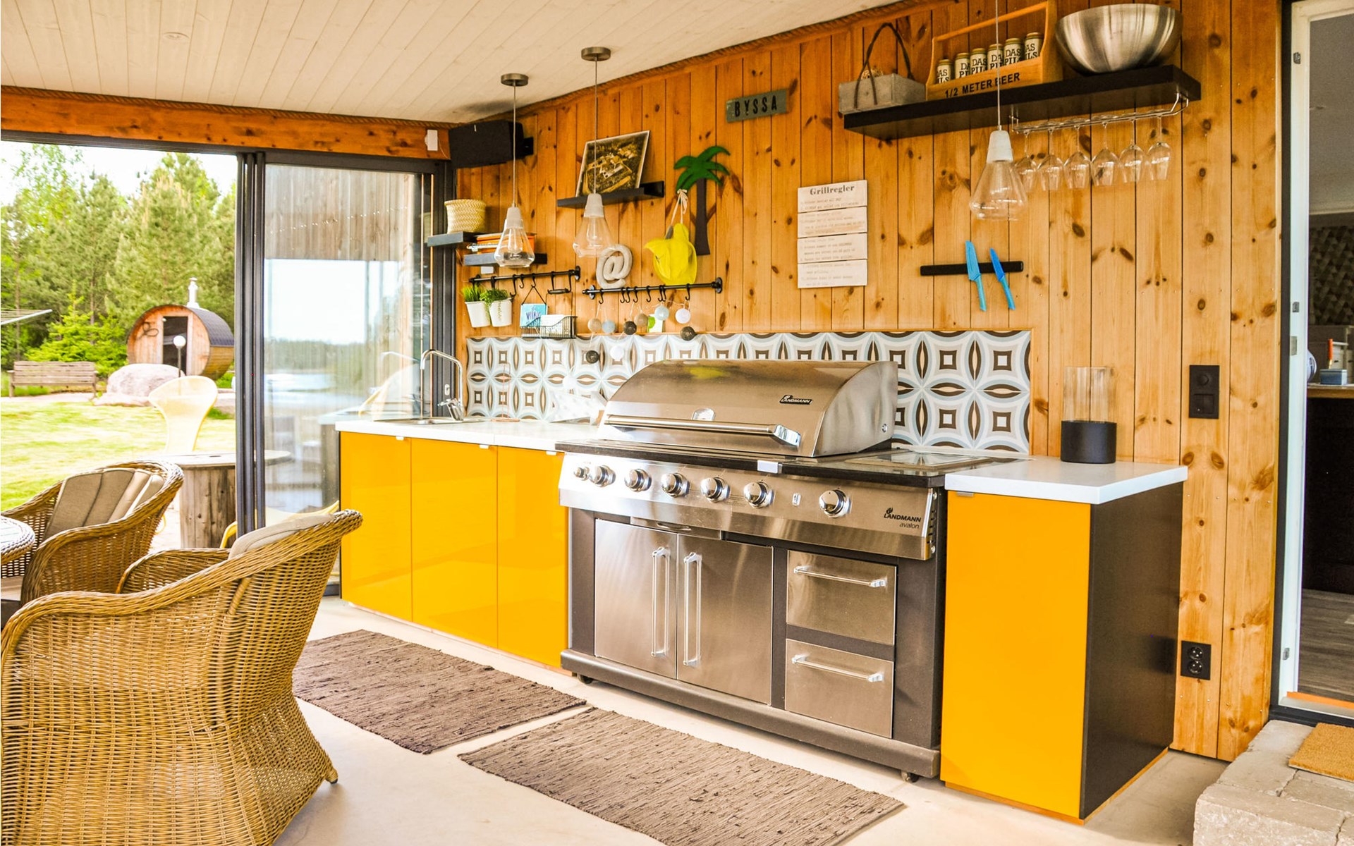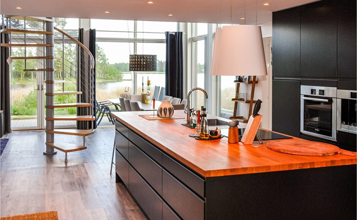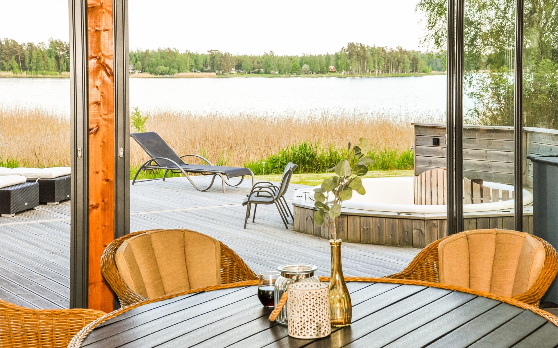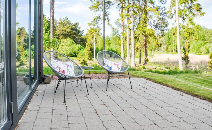 Im Inneren des Hauses erwarten Sie viele gemütliche Bereiche für Geselligkeit und Erholung. Durch die großen Glasflächen fällt viel Licht herein und Sie können den Blick über den Vänernsee schweifen lassen. Das Haus ist sehr modern und die Küche, die komplett ausgestattet ist, lädt zu gemütlichen Abendessen ein. Es gibt 2 Badezimmer mit Dusche und das Haus verfügt über 5 Schlafzimmer mit bequemen Betten. In der Mitte des Hauses befindet sich ein Wintergarten, der mit großen Glasflächen leicht geöffnet/geschlossen werden kann. Es gibt auch eine voll ausgestattete Außenküche.