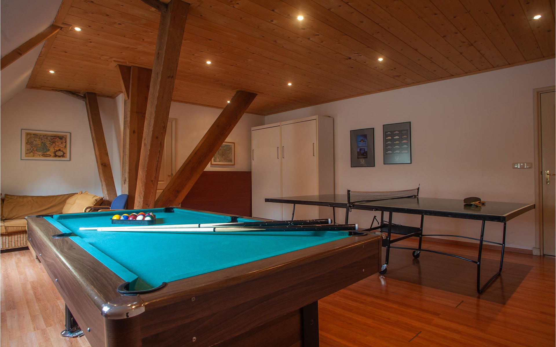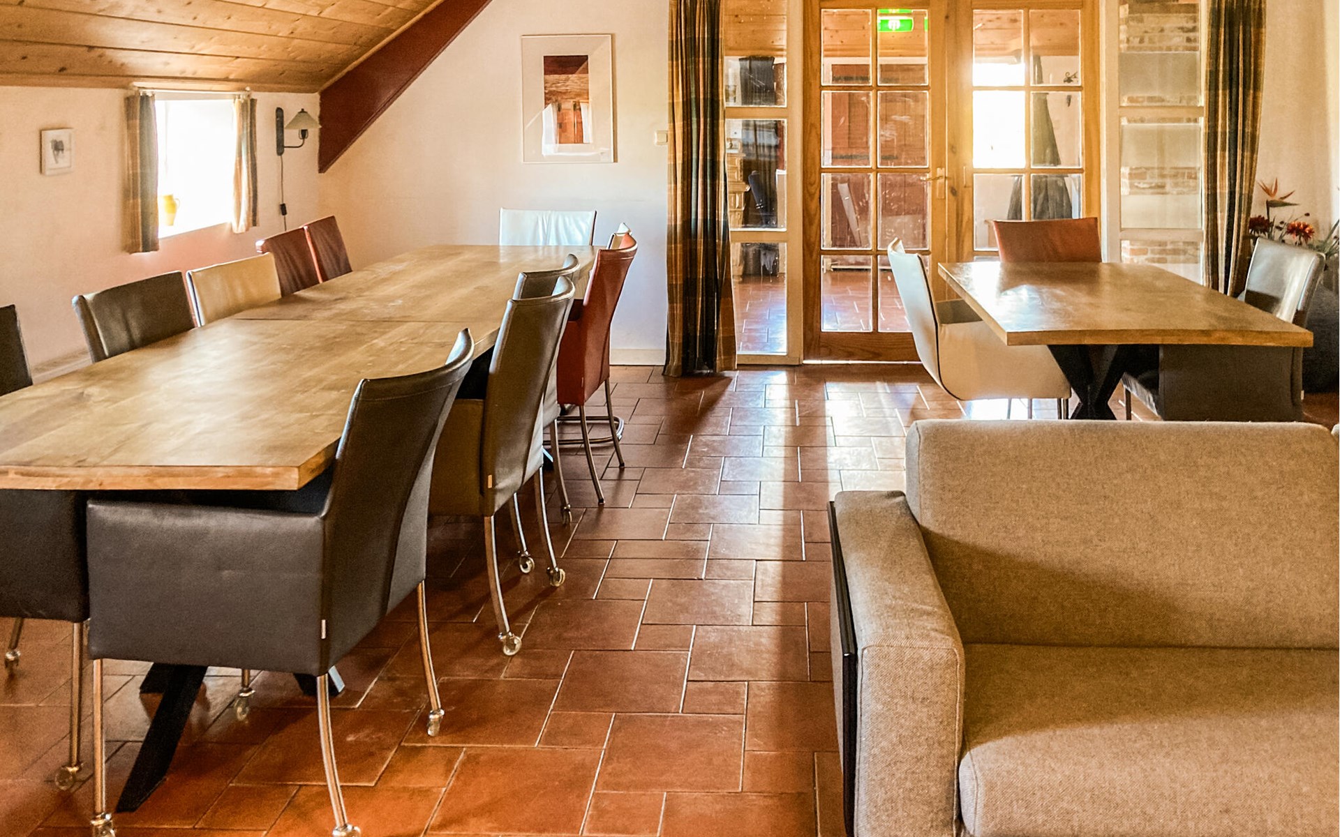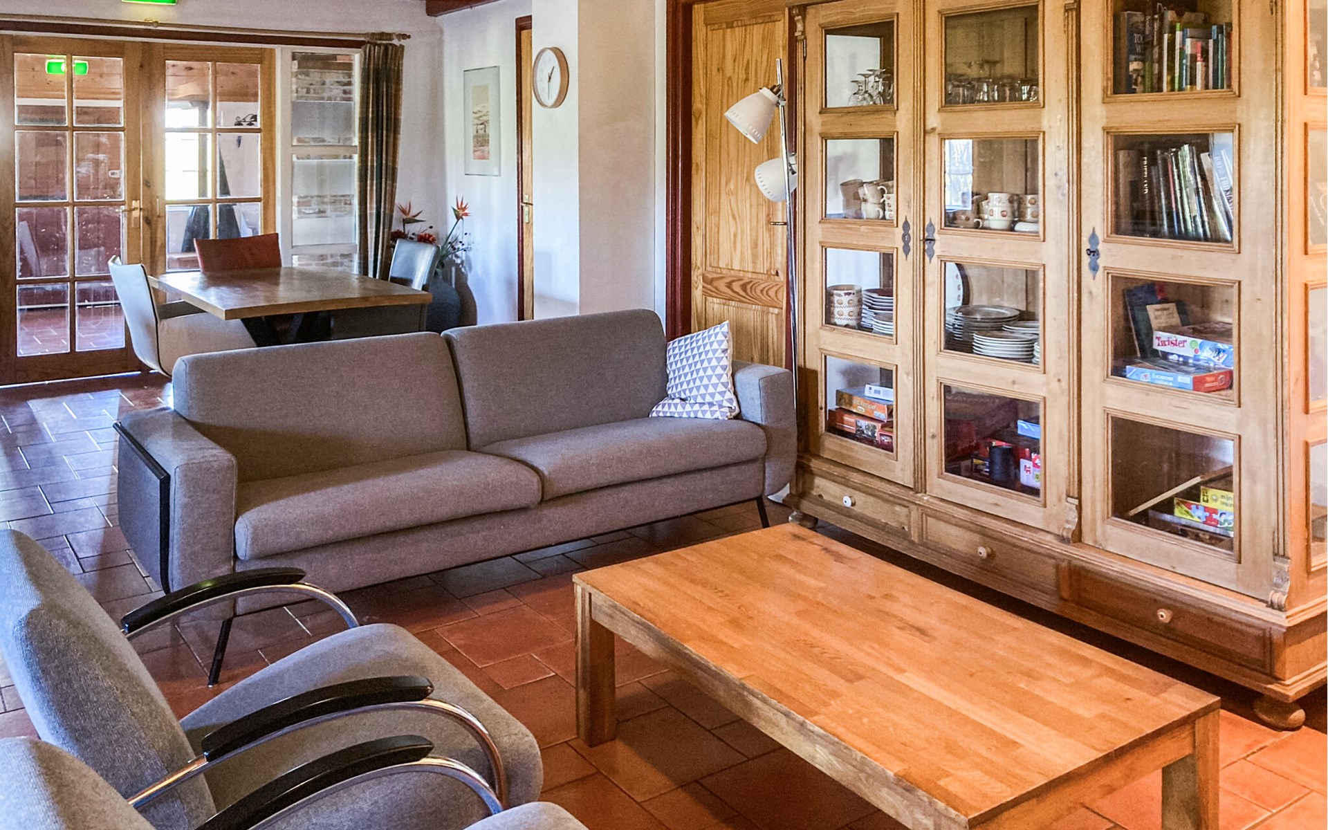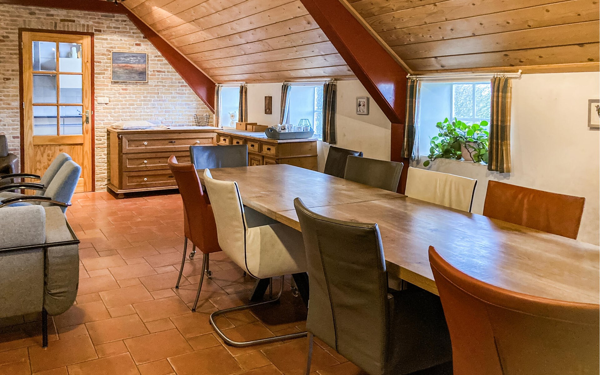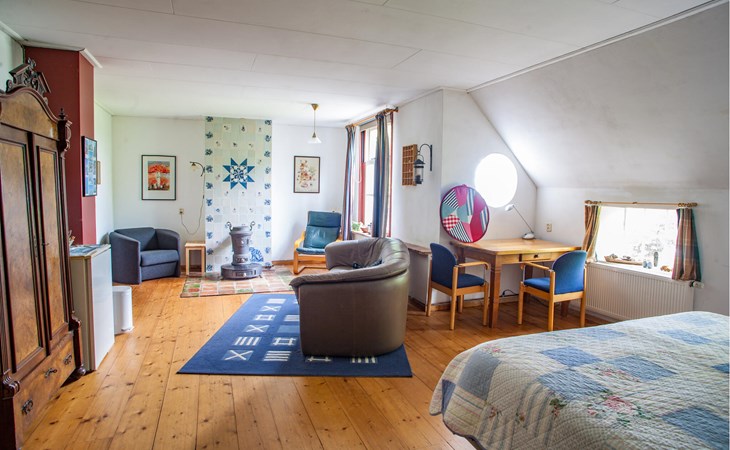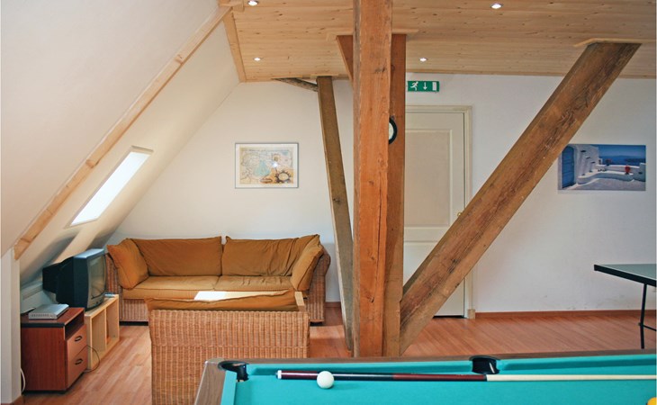 Der ehemalige Bauernhof in Boazum bietet drinnen und draußen angenehme Ecken zu Verweilen. Die charakteristischen Holzbalken geben dieser Gruppenunterkunft einen authentischen Look. Dieses Ferienhaus ist ideal für ein Wochenende oder einen langen Urlaub mit Familie, Freunden oder Kollegen. Auf der oberen Etage befindet sich ein großer Aktivitätsraum mit TV, Billard und Tischtennis. Entspannen Sie im Wellnessbereich, wo Sie die Sauna und den Whirlpool nutzen können. Im Erdgeschoss befinden sich die Küche und ein großer Wohn- und Essbereich. Fünf Schlafzimmer haben den Komfort eines eigenen Badezimmers. Das Schlafzimmer mit Etagenbett und das Schlafzimmer mit Bettkasten sind nur über ein anderes Schlafzimmer zugänglich. Zwei Schlafzimmer sind mit einer kleinen Küche ausgestattet. Verbringen Sie die schönen Sommerabende auf der offenen Terrasse mit Grillen und bewundern Sie die weite Aussicht. Die engagierten Hausbesitzer bewohnen das Wohnhaus und haben einen abgeschlossen Bereich, so dass Sie Ihre Privatsphäre genießen können.