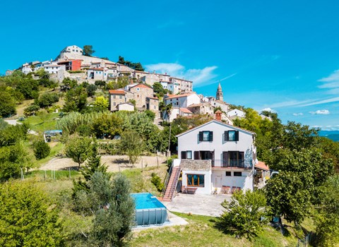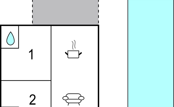 Das Ferienhaus liegt auf einem Grundstück, etwa 500 m von der Hauptstraße entfernt. Sie sind vom Grün der Natur und von Olivenbäumen umgeben. Von der Terrasse am Swimmingpool haben Sie teilweise Blick auf das Meer. Dieser Bungalow besteht aus einem Schlafzimmer mit Doppelbett und einem Einzelbett, Bad, sowie einer Wohnküche, mit noch einer Schlafmöglichkeit. Auf der rechten Seite des Hauses, gleich an der Terrasse am Pool, befindet sich der Grill mit Holztisch und Bänken, für gesellige Momente. Das Haus liegt an einem guten Ausgangspunkt, da der Flughafen, Marina und der historische Altstadtkern von Trogir, Salona und Split in der Nähe liegen.