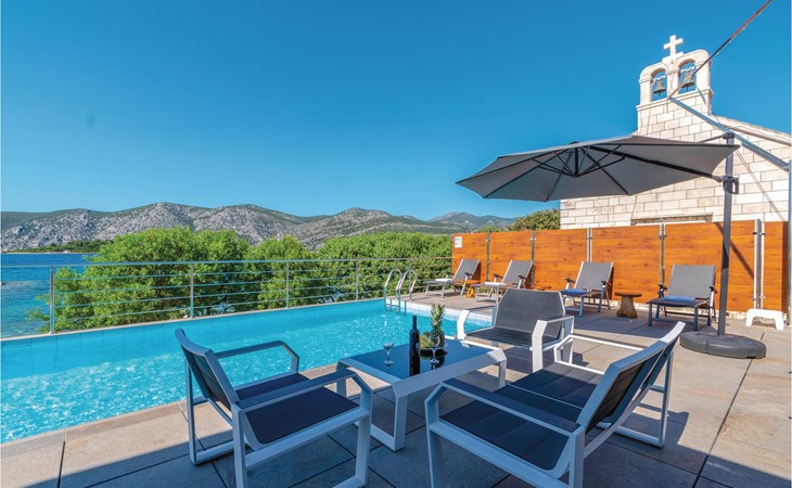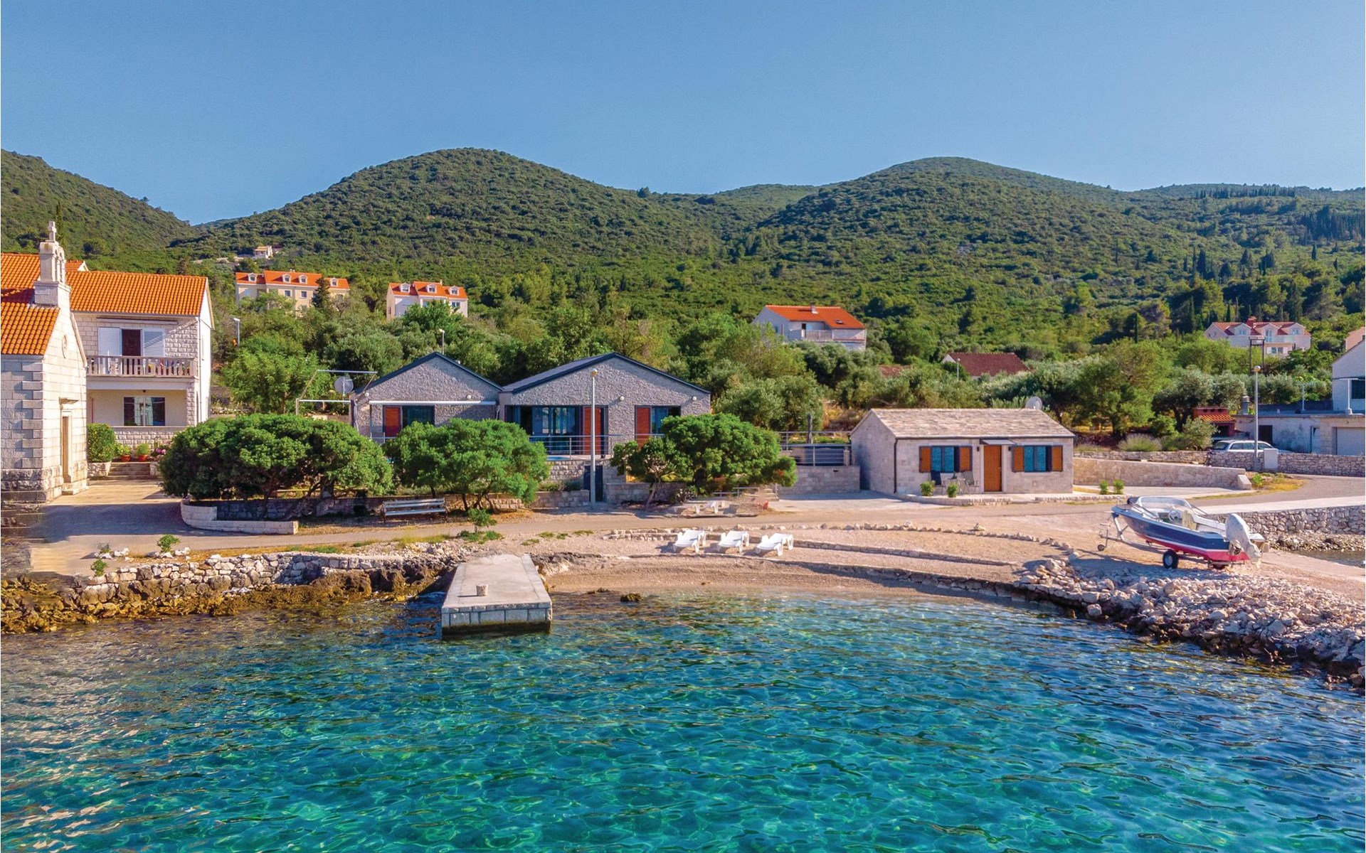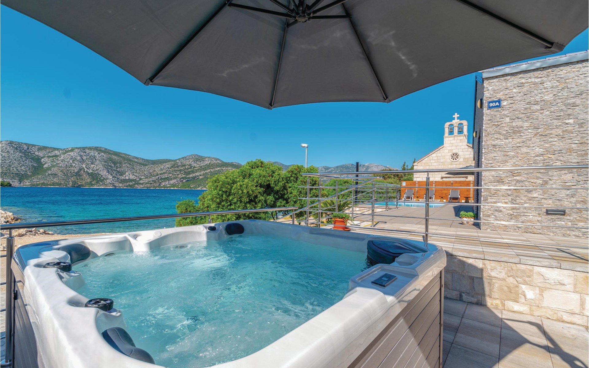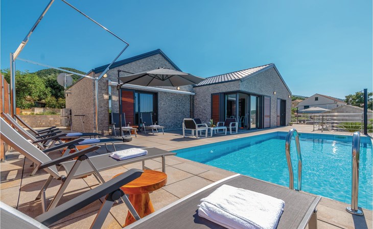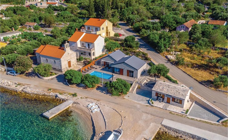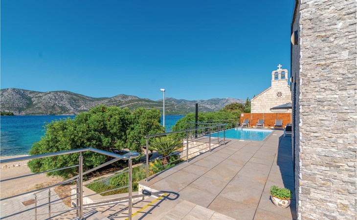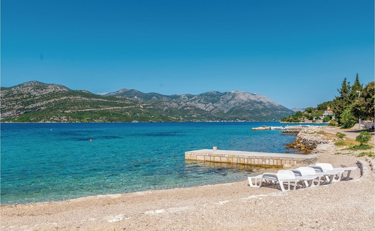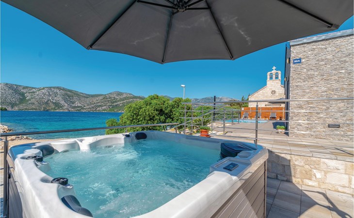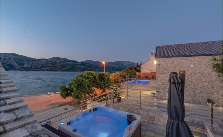 Das wunderschöne Ferienhaus mit Pool liegt fast direkt am Kiesstrand und ist der Traum eines jeden, der einen Sommerurlaub am Mittelmeer verbringen möchte. Terrassen umgeben das geschmackvoll eingerichtete Haus, in dem jedes Schlafzimmer über ein eigenes Badezimmer verfügt. Neben der Terrasse mit großzügigem Pool gibt es auch ein Anbauhäuschen, das als Freizeitraum fungiert, in dem ein Billardtisch und Videospielkonsole stehen. Gleich daneben ist der Whirlpool für fünf Personen. Hinter dem Haus befindet sich der Grillplatz, auf dem Sie Ihre Lieblingsspeisen zubereiten können. In etwa 50 m Entfernung gibt es ein Fischrestaurant. Empfehlenswert ist ein Besuch der Stadt Korčula, wo sich das Geburtshaus des Abenteurers Marco Polo befindet. Kosten Sie die ausgezeichneten lokalen Weine wie Pošipa und Dingača oder unternehmen Sie Bootsausflüge zu den umliegenden Inseln.