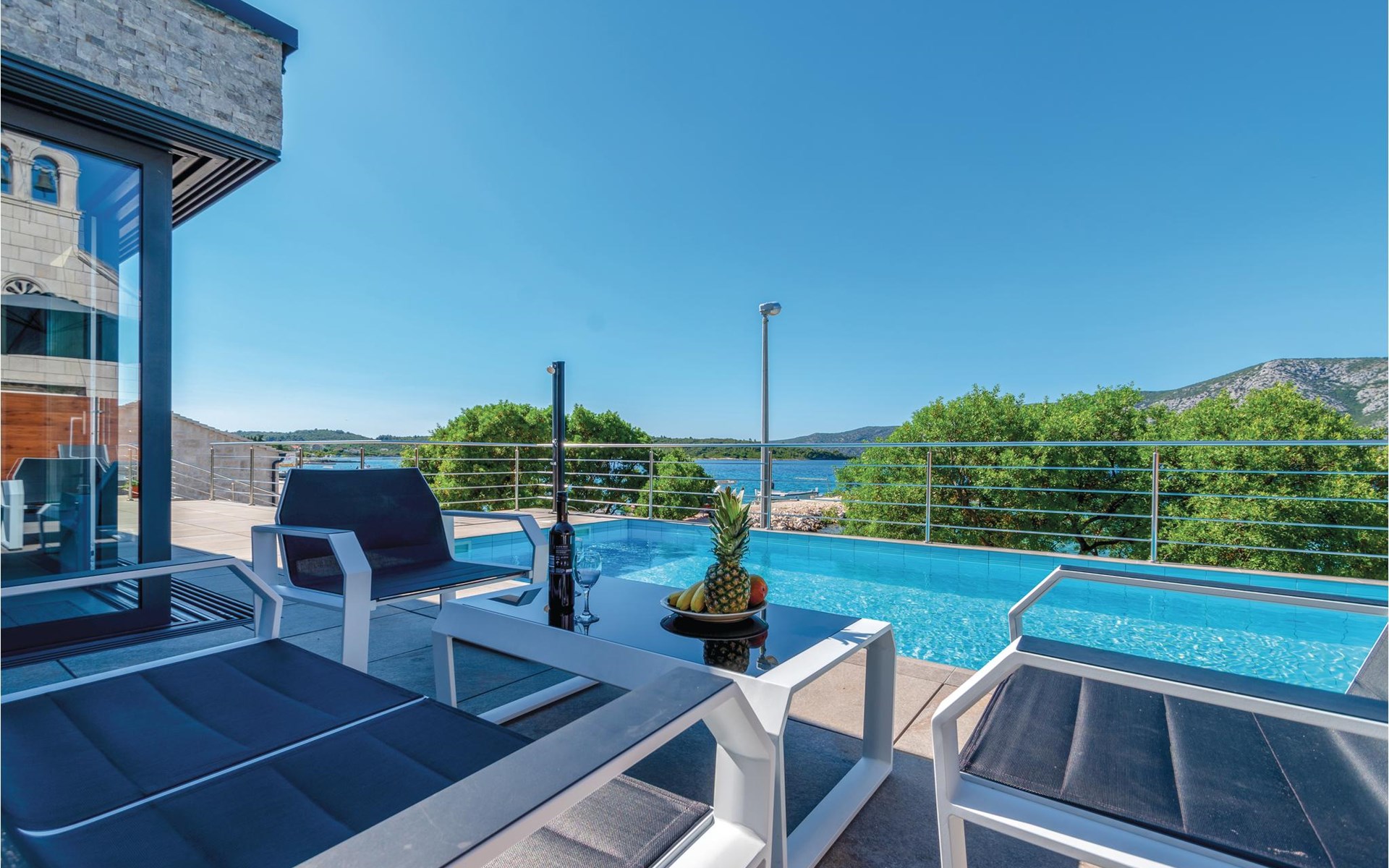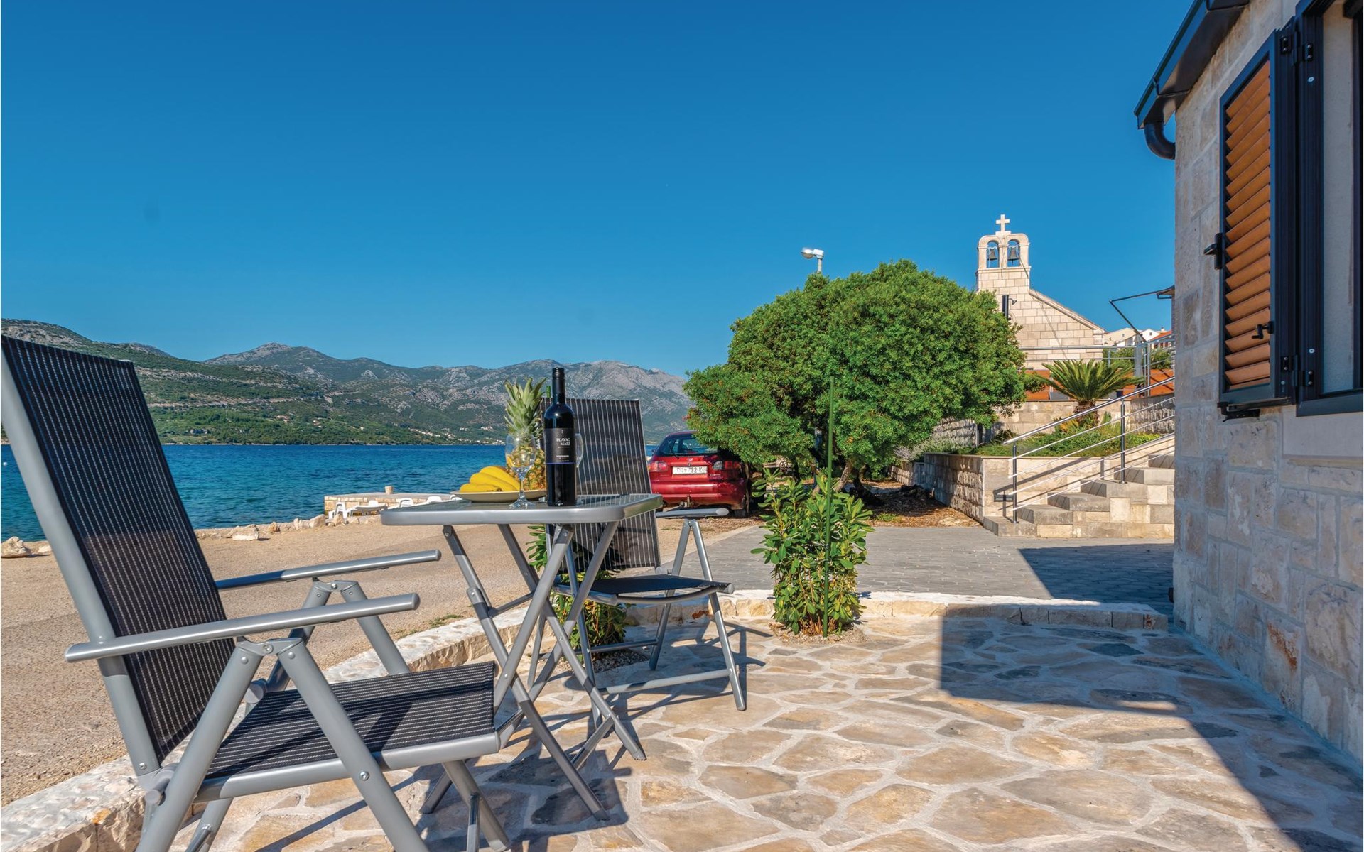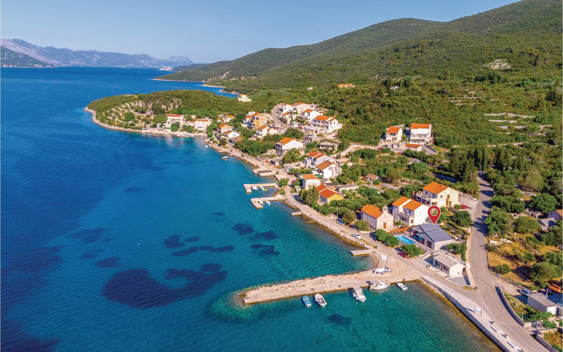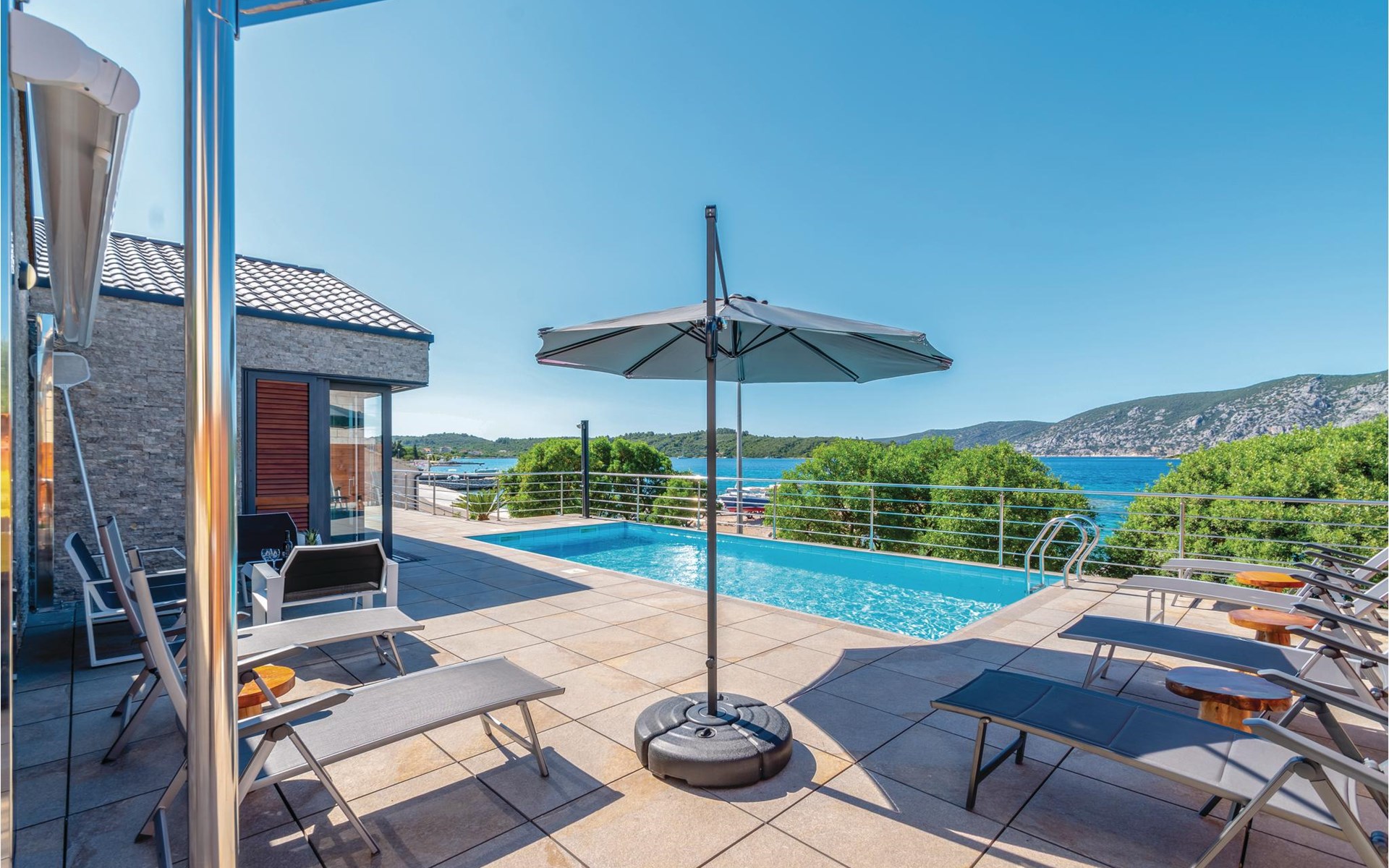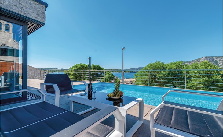 Das wunderschöne Ferienhaus mit Pool liegt fast direkt am Kiesstrand und ist der Traum eines jeden, der einen Sommerurlaub am Mittelmeer verbringen möchte. Terrassen umgeben das geschmackvoll eingerichtete Haus, in dem jedes Schlafzimmer über ein eigenes Badezimmer verfügt. Neben der Terrasse mit großzügigem Pool gibt es auch ein Anbauhäuschen, das als Freizeitraum fungiert, in dem ein Billardtisch und Videospielkonsole stehen. Gleich daneben ist der Whirlpool für fünf Personen. Hinter dem Haus befindet sich der Grillplatz, auf dem Sie Ihre Lieblingsspeisen zubereiten können. In etwa 50 m Entfernung gibt es ein Fischrestaurant. Empfehlenswert ist ein Besuch der Stadt Korčula, wo sich das Geburtshaus des Abenteurers Marco Polo befindet. Kosten Sie die ausgezeichneten lokalen Weine wie Pošipa und Dingača oder unternehmen Sie Bootsausflüge zu den umliegenden Inseln.