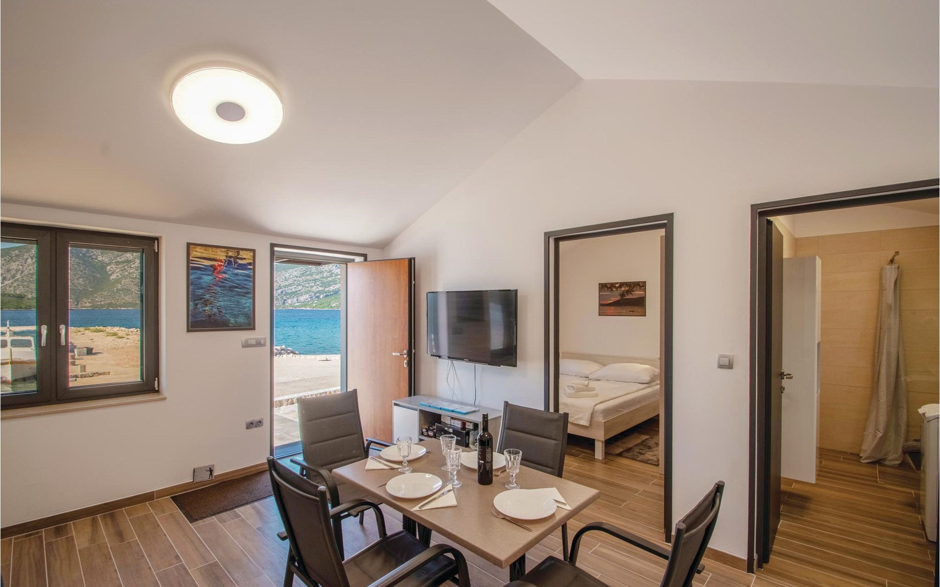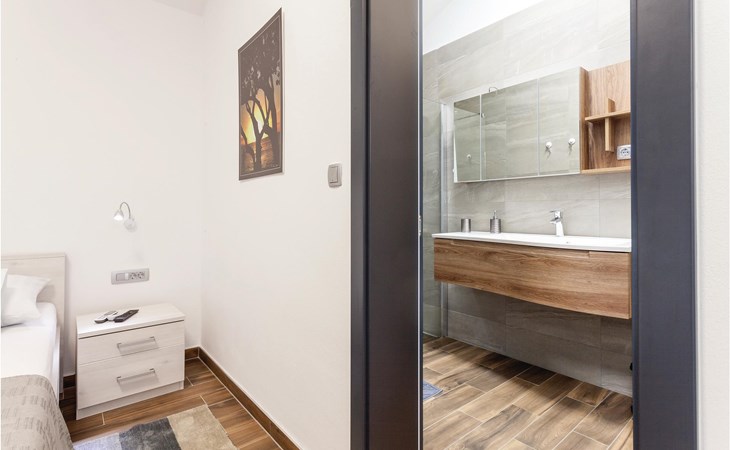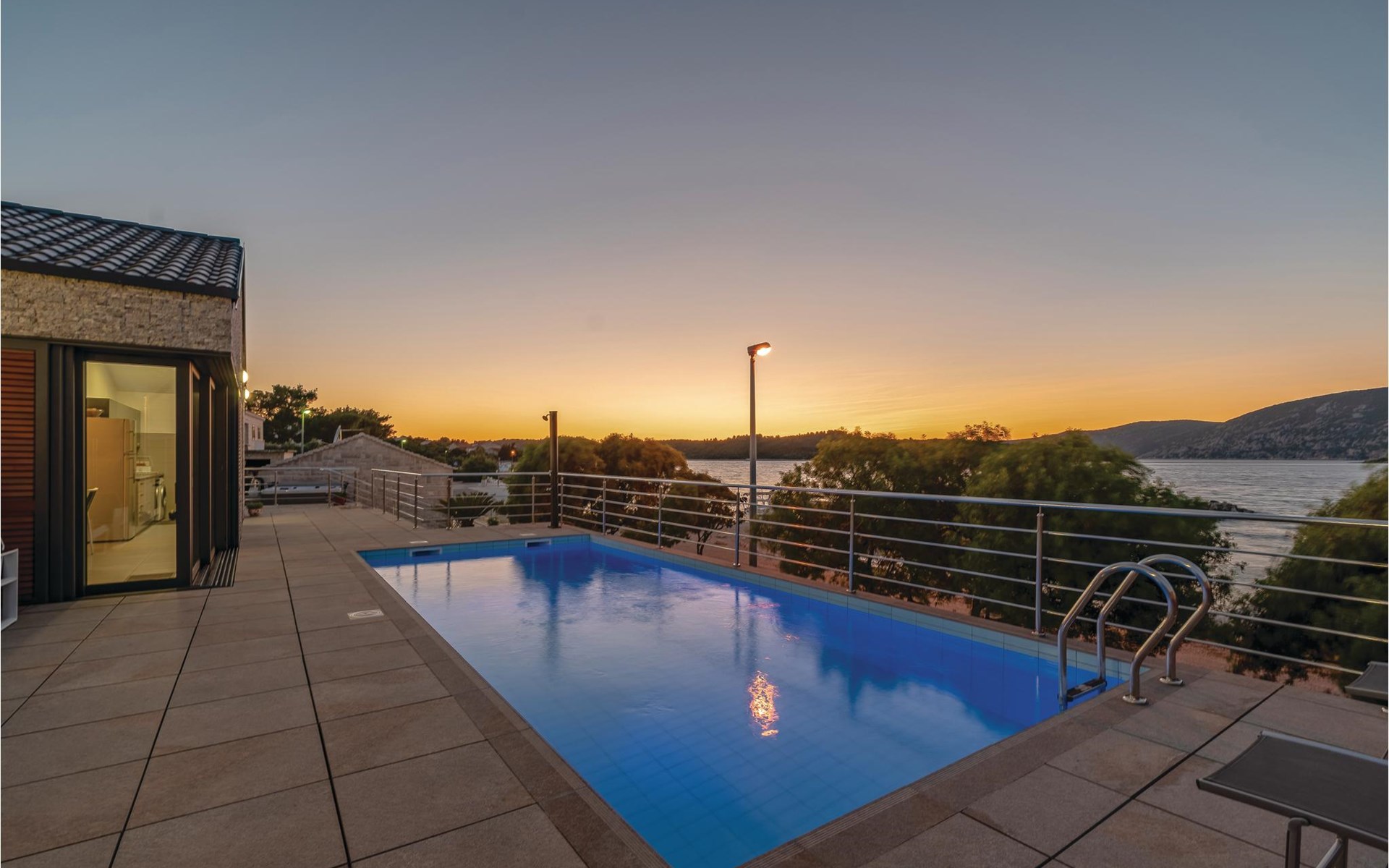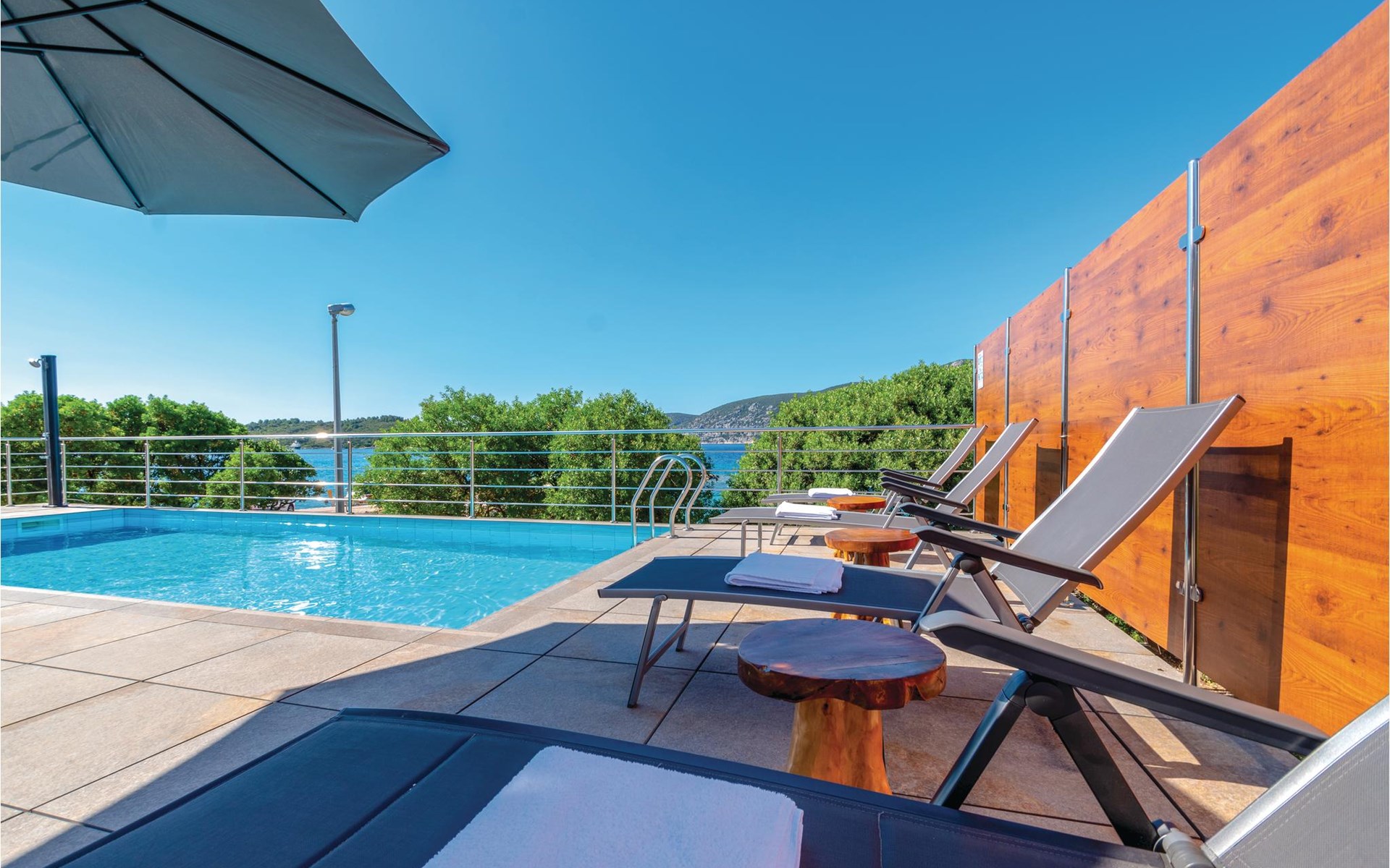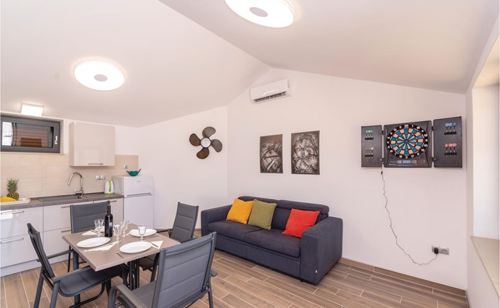 Das wunderschöne Ferienhaus mit Pool liegt fast direkt am Kiesstrand und ist der Traum eines jeden, der einen Sommerurlaub am Mittelmeer verbringen möchte. Terrassen umgeben das geschmackvoll eingerichtete Haus, in dem jedes Schlafzimmer über ein eigenes Badezimmer verfügt. Neben der Terrasse mit großzügigem Pool gibt es auch ein Anbauhäuschen, das als Freizeitraum fungiert, in dem ein Billardtisch und Videospielkonsole stehen. Gleich daneben ist der Whirlpool für fünf Personen. Hinter dem Haus befindet sich der Grillplatz, auf dem Sie Ihre Lieblingsspeisen zubereiten können. In etwa 50 m Entfernung gibt es ein Fischrestaurant. Empfehlenswert ist ein Besuch der Stadt Korčula, wo sich das Geburtshaus des Abenteurers Marco Polo befindet. Kosten Sie die ausgezeichneten lokalen Weine wie Pošipa und Dingača oder unternehmen Sie Bootsausflüge zu den umliegenden Inseln.