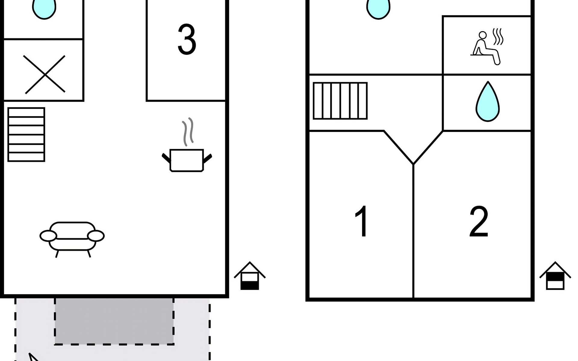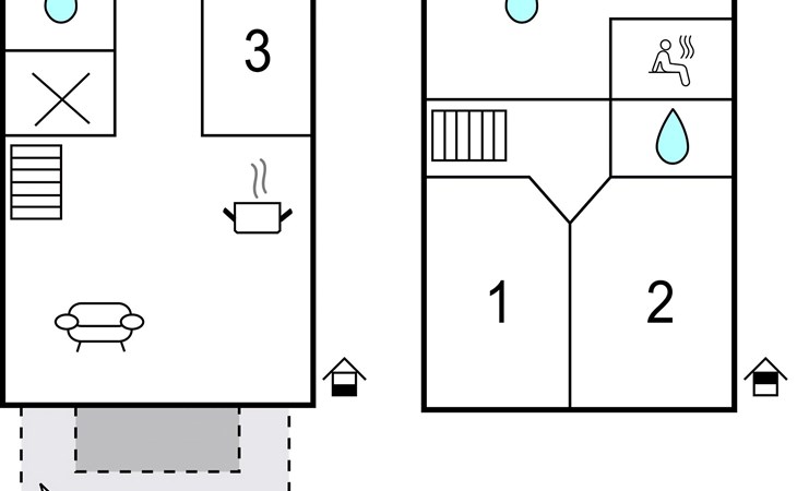 Eines der Schlafzimmer, das Einzelzimmer, ist mit einem besonders komfortablen 1,20 m breiten Bett ausgestattet und liegt ebenso wie eines der Badezimmer (mit Dusche ohne Einstiegsschwellen) im Erdgeschoss, so dass das Haus auch für Gäste sehr gut geeignet ist, die die Treppe in den ersten Stock nicht so gut bewältigen können.