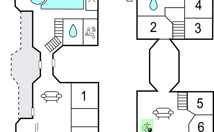 Unweit von Blåvand nahe der Dünenlandschaften und der weißen Sandstrände der faszinierenden Nordsee erwartet Sie und Ihre Familie dieses Haus. Die Zimmer sind geräumig, hell und gut ausgestattet und machen einen modernen, stimmungsvollen Eindruck. Die Fensterfront sorgt für viel natürliches Licht bei den Mahlzeiten und einen schönen Blick auf die Umgebung. Hier können Sie sich am Tischfußball unterhalten oder im Wellnessbereich erholen. Gehen Sie in den kühleren Jahreszeiten nach einem Tag an der freien Luft in die Sauna oder genießen Sie die gemütliche Wärme vor dem Biio Kaminofen.