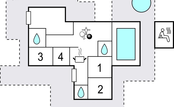 Der schöne Aktivitätsraum mit Pool- und Billardtisch und einer PlayStation 4 bietet viel Unterhaltung. Im Poolbereich gibt es eine WiFi-Stereoanlage. Sie finden eine moderne und gut ausgestattete Küche mit Induktionsherd, Weinkühlschrank und Geschirrspüler, die das Zentrum des Hauses bildet. An diesem wunderbaren Treffpunkt kann die ganze Familie zum gemeinsamen Kochen zusammen kommen und sich über den Tag austauschen. Im ganzen Haus wird großer Wert auf Komfort und Luxus gelegt. Im Freien können Sie den dänischen Sommer auf der teilweise überdachten Terrasse genießen, während die Kinder auf dem hauseigenen Spielplatz schaukeln und spielen.