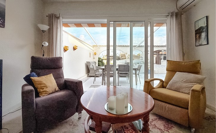 Ihr Ferienhaus bietet beste Voraussetzungen für erholsame Tage unter der spanischen Sonne. Beginnen Sie den Morgen mit einem ausgiebigen Frühstück und freuen Sie sich auf Entspannung und vergnügliche Aktivitäten. Machen Sie es sich im gemütlichen Wohnbereich bequem. Lehnen Sie sich zurück, spielen Sie mit Ihren Kindern oder speisen Sie gemeinsam am Esstisch. Nutzen Sie auch die geschlossene Terrasse für gemeinsame Mahlzeiten oder einen erfrischenden Drink am Abend.