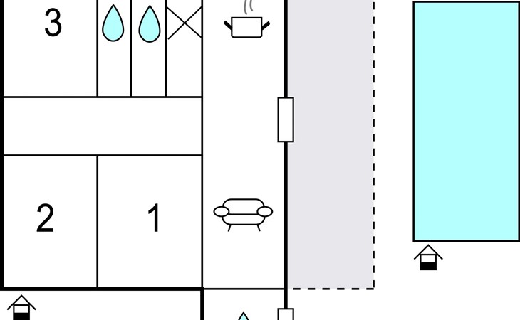 Das Haus hat eine große, überdachte Terrasse, auf der Sie gemeinsam Ihre Urlaubsmahlzeiten genießen können und anschließend in den privaten Swimmingpool springen können. Das gesamte Gelänge ist eingezäunt und bietet Ihnen daher Privatsphäre und Sicherheit, dass Ihre Kinder auf dem Gelände bleiben.