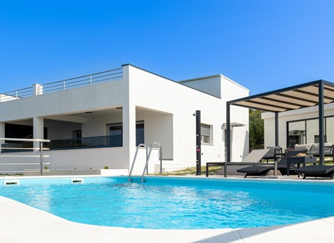 Auch der gepflegte Außenbereich lädt zu jeder Tageszeit zum Verweilen ein. Erfrischen Sie sich gleich morgens im herrlichen Pool und tanken Sie neue Energie auf den bequemen Sonnenliegen, während sich die jüngeren Gäste auf dem Rasen austoben. Die überdachte Veranda ist ideal für ein ausgiebiges Frühstück in der milden Morgensonne sowie für stimmungsvolle Grillabende, an denen Sie in lauen Sommernächten immer wieder gerne in den beleuchteten Pool eintauchen werden.