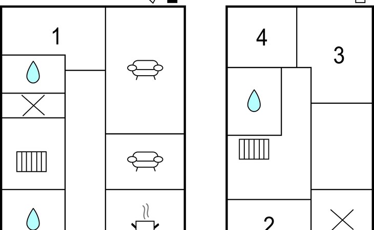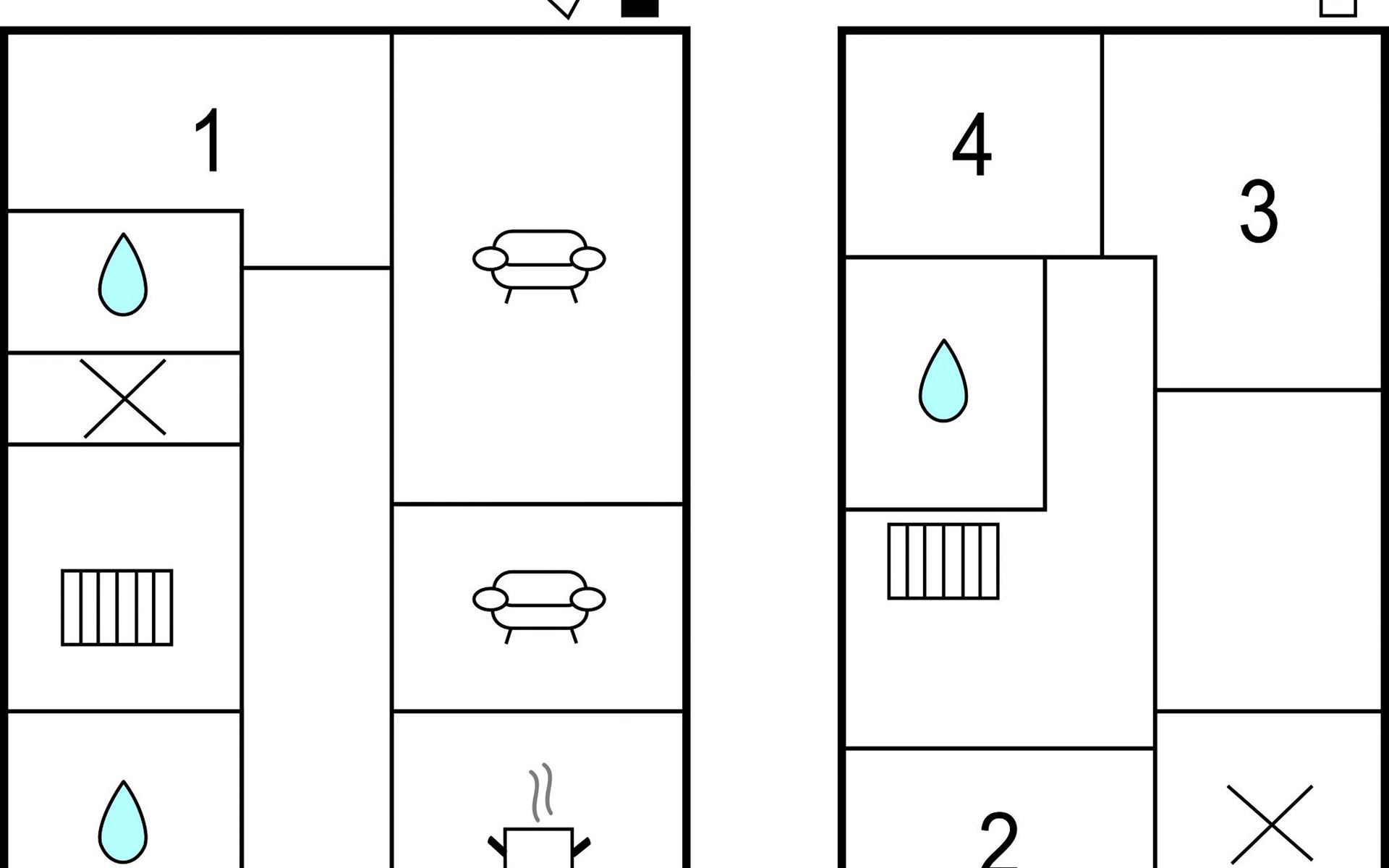 Sie betreten diese Haushälfte durch den Windfang und kommen in die geräumige Diele mit Kaminofen und angrenzendem Abstellraum. Das Wohnzimmer auf der gleichen Ebene hat einen Durchgang zum Esszimmer, von dem aus Sie weiter in die Küche mit Pelletofen gelangen. Unten gibt es außerdem ein Badezimmer mit Wanne und ein Schlafzimmer mit eigenem Duschbad. Wie das Erdgeschoss ist auch dieses Schlafzimmer mit dem Rollstuhl erreichbar. Die Dusche in diesem Zimmer ist mit einem Klappsitz, die Toilette mit einer Stange ausgestattet. Das Bett ist jedoch nicht angepasst.
