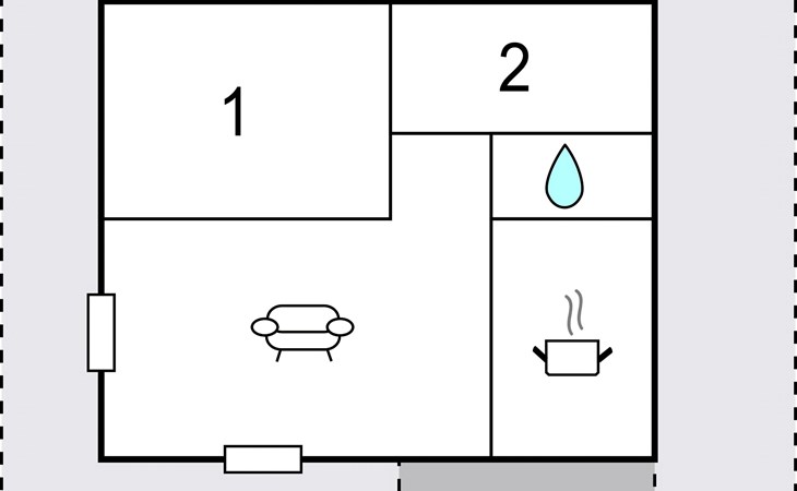 Das Ferienhaus befindet sich auf einem schönen, gemeinschaftlich genutzten Grundstück und bietet Platz für eine Familie und zwei Haustiere. Die Wohnfläche verteilt sich auf 2 Schlafzimmer, 1 Badezimmer und einen Wohnraum mit Küche. Die Einrichtung ist gemütlich mit vielen Holzelementen.