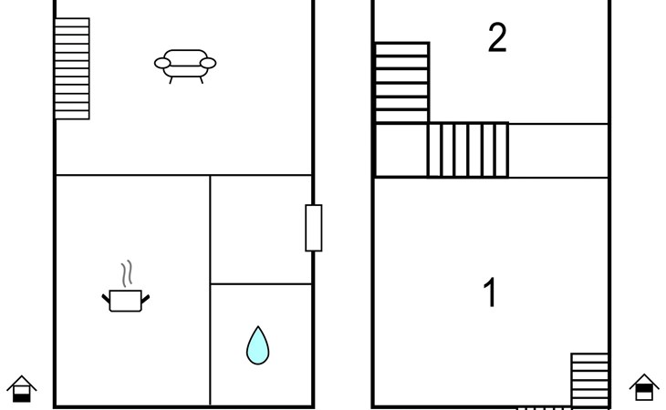 Gemütliches Holzhaus, idyllisch auf einem Bauernhof und ca. 20 km nordwestlich von Jönköping gelegen. Weiden mit Schafen, Kühen und Pferden umgeben das Haus. Und um die Ecke gibt es ein gutes Wandergebiet, Wälder und Wiesen laden Sie zum Beerenpflücken und Pilzesuchen ein. Bequem mit dem Fahrrad erreichen Sie den kleinen Badesee und in 15 Autominuten sind Sie an den schönen Stränden des Vättern. Im Winter locken das Mullsjö Skigebiet und gute Loipen. Aufgrund des schrägen Daches ist die Deckenhöhe im Obergeschoss relativ niedrig. Schlafzimmer 2, Durchgangszimmer.