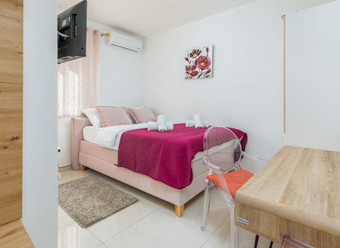 Dieses einfach und funktionell eingerichtete Apartment befinden sich in Solin. Das Apartment CDF735 mit zwei Schlafzimmern kann dazu gebucht werden. Jedes Apartment verfügt über eine eigene kleine Terrasse und zur gemeinsamen Benutzung steht die große Terrasse mit Pool zur Verfügung, wo Sie die Sonne und den Blick auf die Stadt Split genießen können.