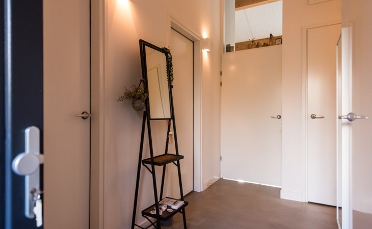 Es gibt 3 Schlafzimmer mit jeweils 2 Boxspringbetten, ein Badezimmer mit ebenerdiger Dusche, Badewanne und Doppelwaschbecken. In der geräumigen Diele mit Garderobe befindet sich ein separates WC.