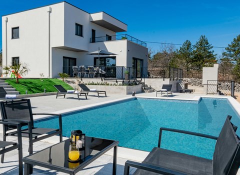 Drei Schlafzimmer, zwei Bäder und ein Wohnraum mit Küche heißen bis zu acht Gäste herzlich willkommen. Das Ferienhaus ist hell und freundlich eingerichtet. In Ihrem großen privaten Garten finden Sie Ihren privaten Pool. Hier können Sie den ganzen Tag über das wundervolle Wetter Kroatiens genießen. Auf der teils überdachten Terrasse können Sie morgens frühstücken oder den Tag bei einem Glas Wein ausklingen lassen während Sie den schönen Ausblick genießen. Ein Grill für gemütliche Grillabende steht Ihnen auch zur Verfügung.