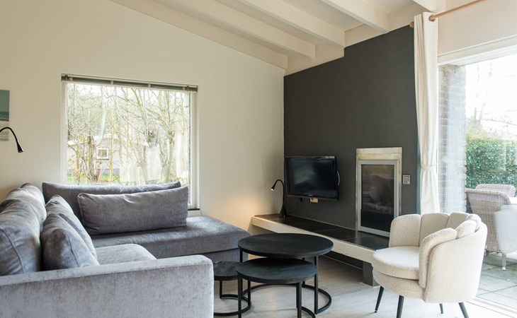 (Der im Bild des Wohnzimmers sichtbare Gaskamin wird aus Nachhaltigkeitsgründen des Eigentümers nicht mehr genutzt!)