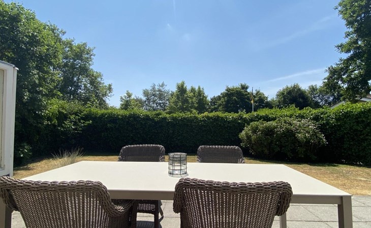 Durch das Wohnzimmer erreichen Sie die nach Süden ausgerichtete Terrasse mit großem Esstisch und Garten mit viel Privatsphäre im Sommer.
