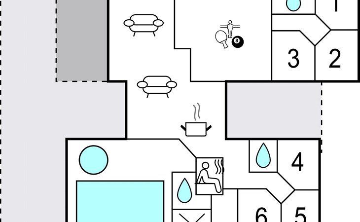 Südlich vom Ringkøbing Fjord gelegen begrüßt Sie dieses tolle Ferienhaus. Die modernen und komplett ausgestatteten Zimmer bieten Platz und Privatsphäre für mehrere Familien, die den Urlaub gemeinsam verbringen. Unterhalten Sie sich bei einer Runde Tischtennis oder Tischfußball und verbringen Sie gemütliche Stunden beim Badespaß im Innenpool.