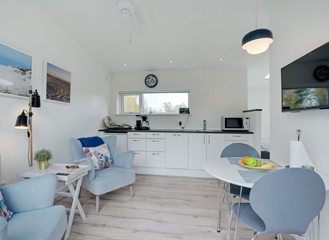 Mit einem herrlichen Blick auf das Wasser des Kleinen Belts und direktem Zugang zum Strand lädt diese Unterkunft zu entspannenden Tagen an der frischen Meeresluft ein. Lassen Sie den Alltag hinter sich und genießen Sie das gemütliche Ambiente der geschmackvoll eingerichteten Wohnung im Hejlsminde Badehotel. Durch die großen Fensterfronten haben Sie stets einen wunderschönen Ausblick auf das Meer, der Sie sofort in Urlaubsstimmung versetzt. Nutzen Sie den hellen Wohnbereich, um gemeinsam Zeit zu verbringen, und genießen Sie die komfortable Sitzecke für ruhige Abende. Die gut ausgestattete Essküche bietet alles, was Sie für die Zubereitung köstlicher Mahlzeiten brauchen.