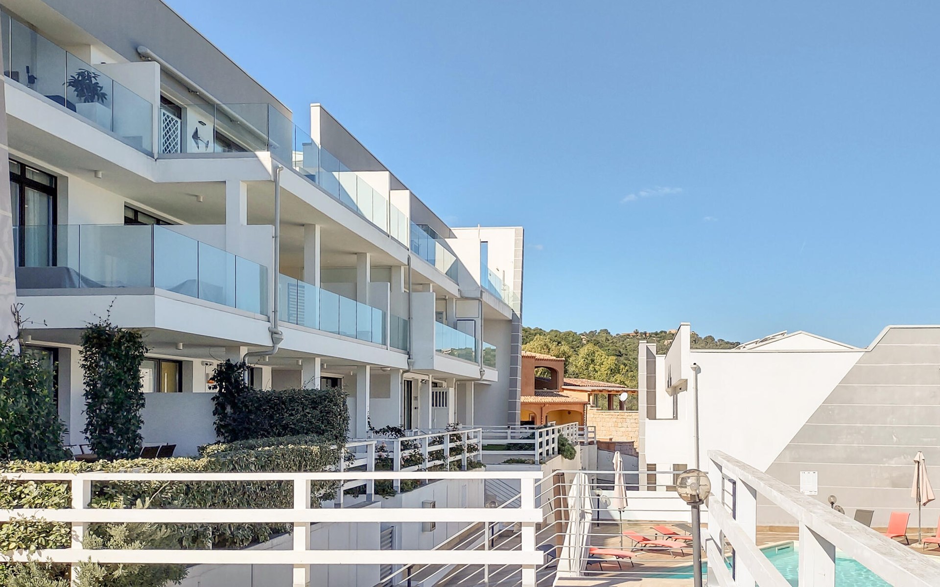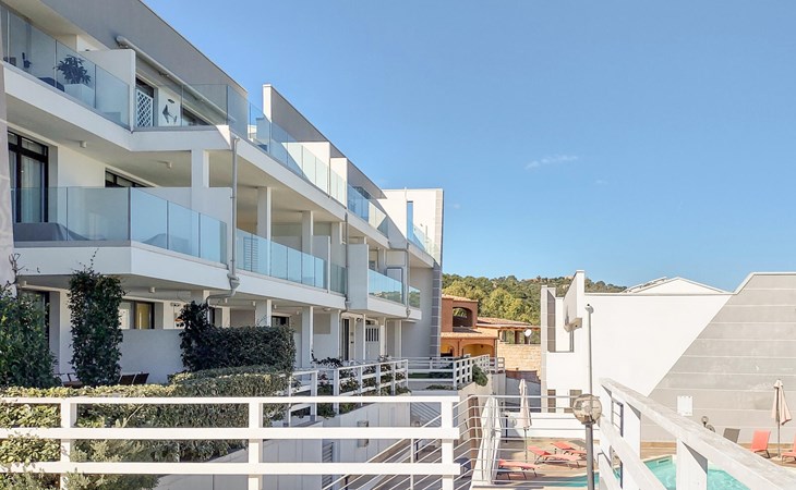 Auf der schönen Terrasse mit Gartenmöbeln können Sie die Urlaubstage in der Sonne verbringen und den Blick auf das Meer und die Umgebung genießen. An heißen Tagen bietet der gemeinschaftlich genutzte Außenpool Abkühlung.