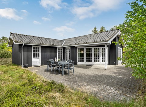 Genießen Sie einen fantastischen Panoramablick von der Terrasse dieses Strandhauses am beliebten Hasmark Strand.