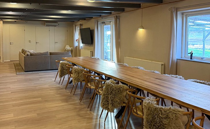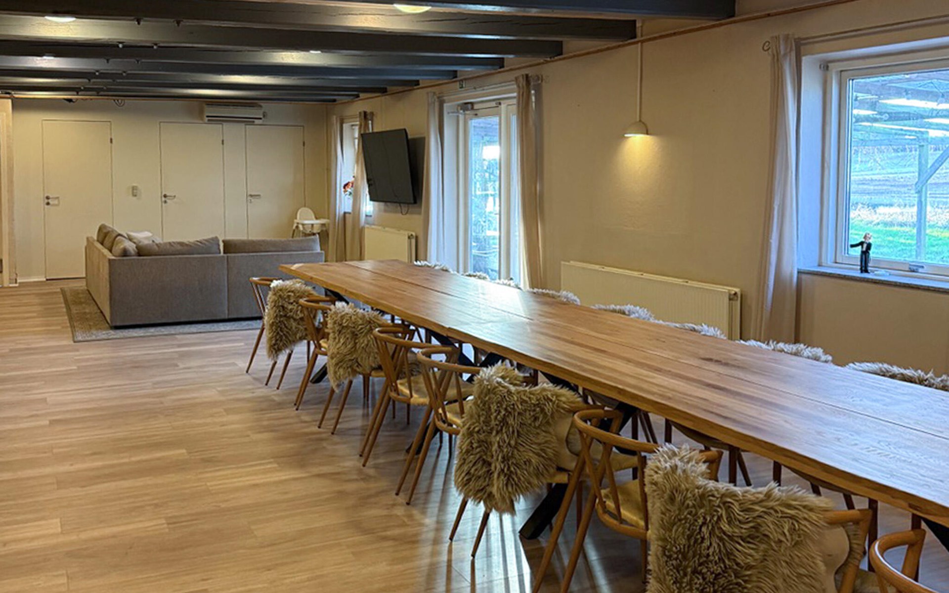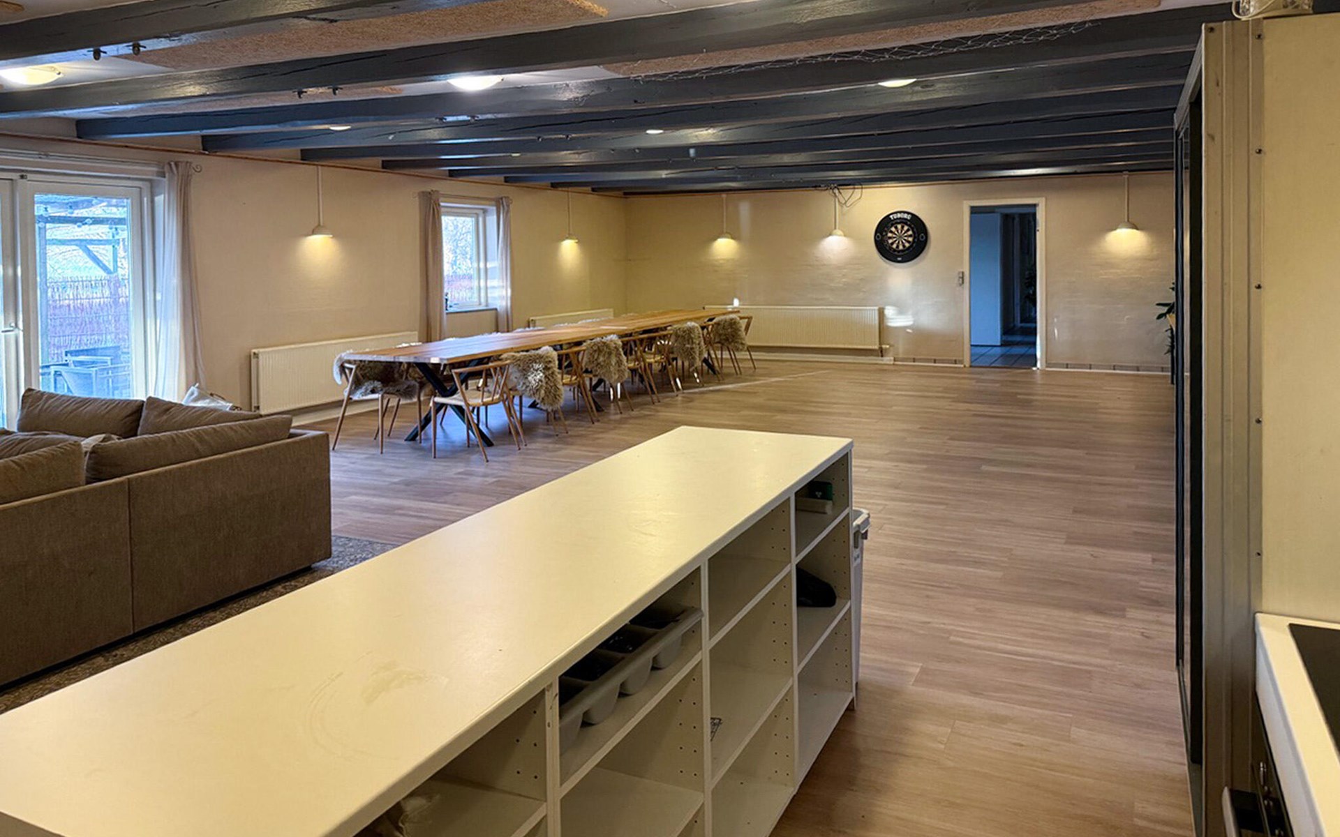 Verbringen Sie Ihren nächsten Urlaub in diesem geschmackvoll renovierten Flügel des Bøstrup Strandgård. Ihre geräumige Unterkunft bietet ideale Bedingungen für einen gemeinsamen Urlaub mit mehreren Generationen oder befreundeten Familien. Erleben Sie gesellige Tage auf dem Land, in einer Umgebung, die Ruhe, Weite und Nähe zum Meer vereint. Nutzen Sie den großen Aufenthaltsraum für gemeinsame Mahlzeiten oder gesellige Spieleabende. Entspannen Sie sich in der komfortablen Sofaecke oder ziehen Sie sich mit einem Buch zurück.