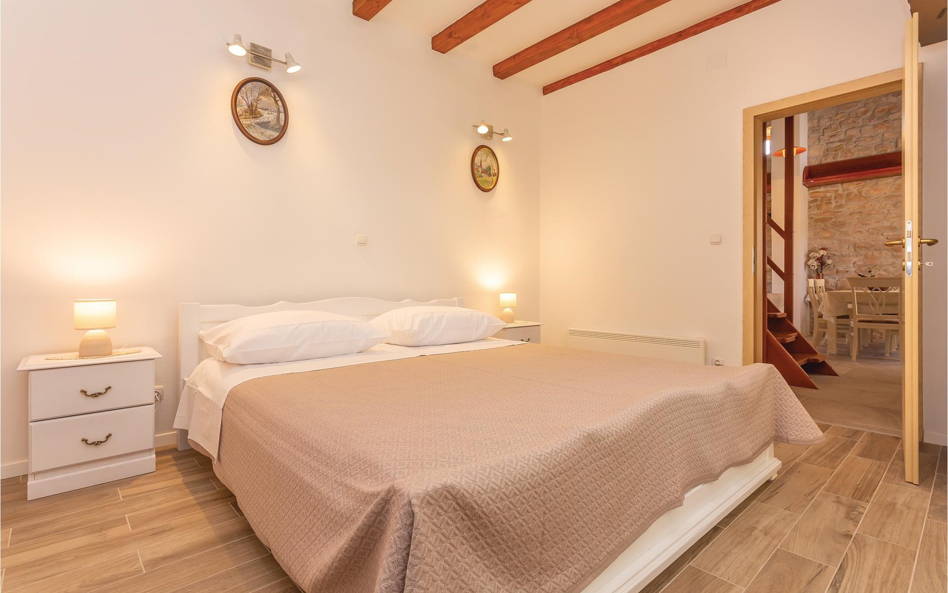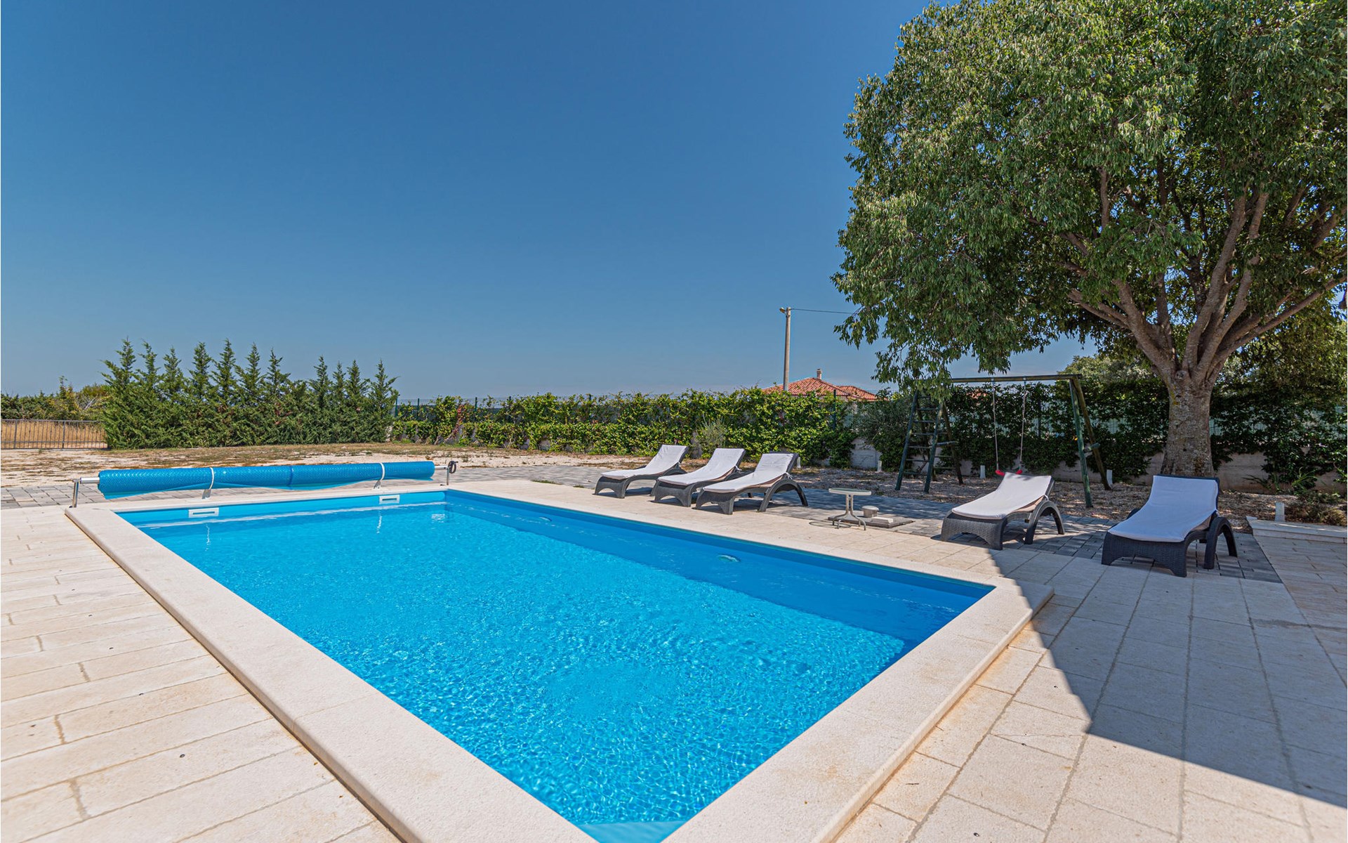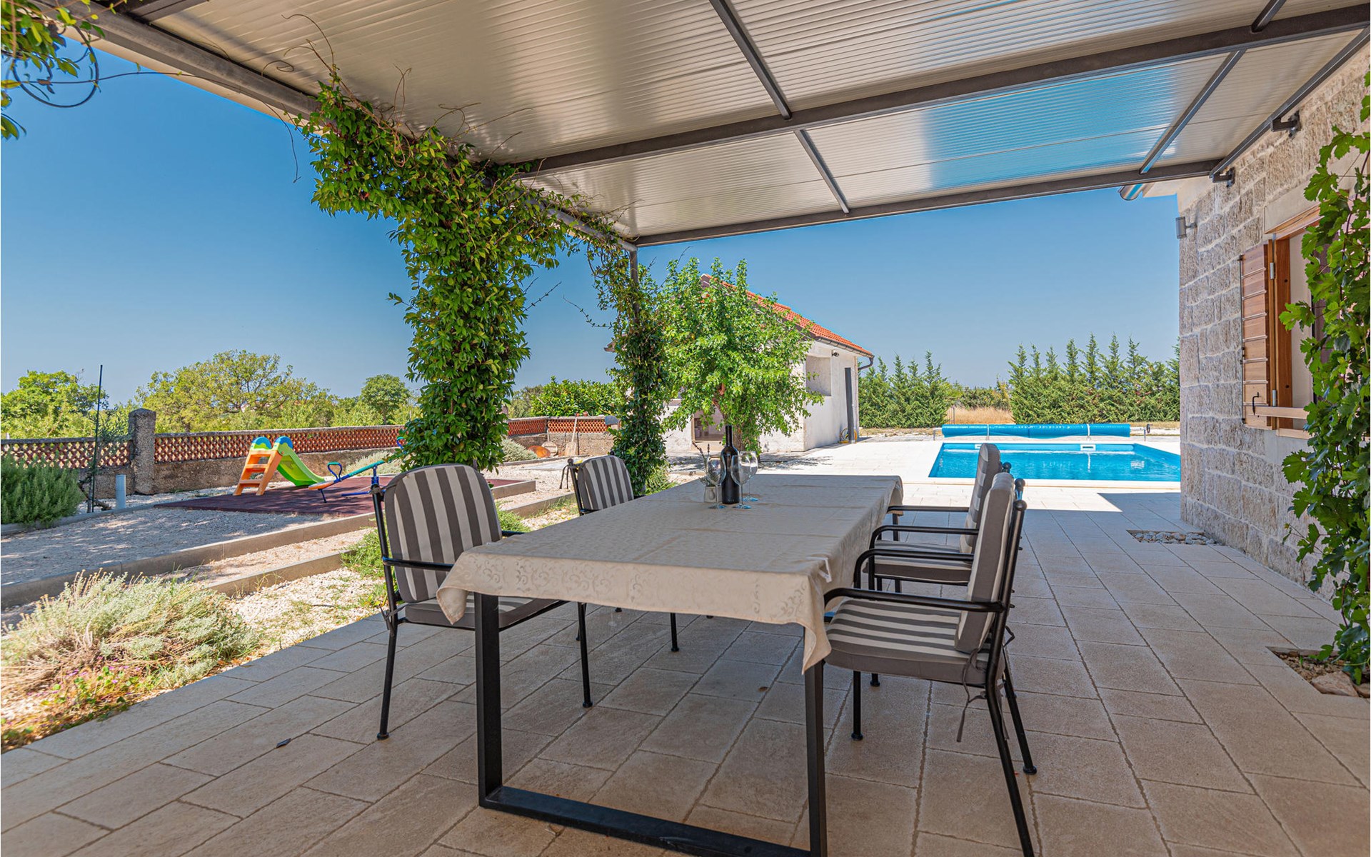 Dieses schöne Ferienhaus mit Pool befindet sich in der kleinen Ortschaft Pakovo Selo, nicht weit von der Stadt Šibenik entfernt. Hier finden Sie Ruhe, fernab von der Alltagshektik. Während der heißen Sommertage erfrischen Sie sich im Pool und die jüngsten Gäste finden noch zusätzliche Unterhaltung auf dem Grundstück. Allen aktiven Urlauber empfehlen wir einen Besuch im Nationalpark Krka, entdecken Sie Archäologische Fundorte sowie verschiedene andere Sehenswürdigkeiten. Besuchen Sie auch das mediterrane Städtchen Skradin sowie die malerischen Orte in der Umgebung. Lernen Sie die Kultur und Geschichte dieser Gegend kennen.