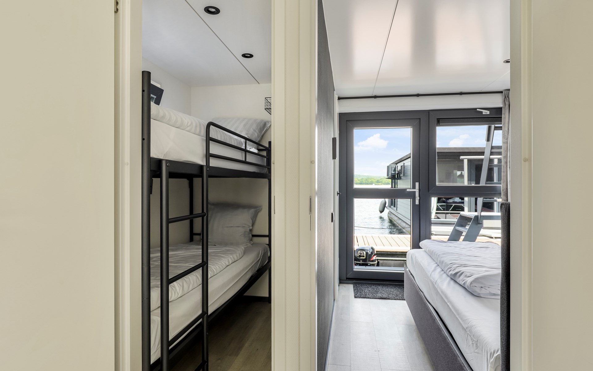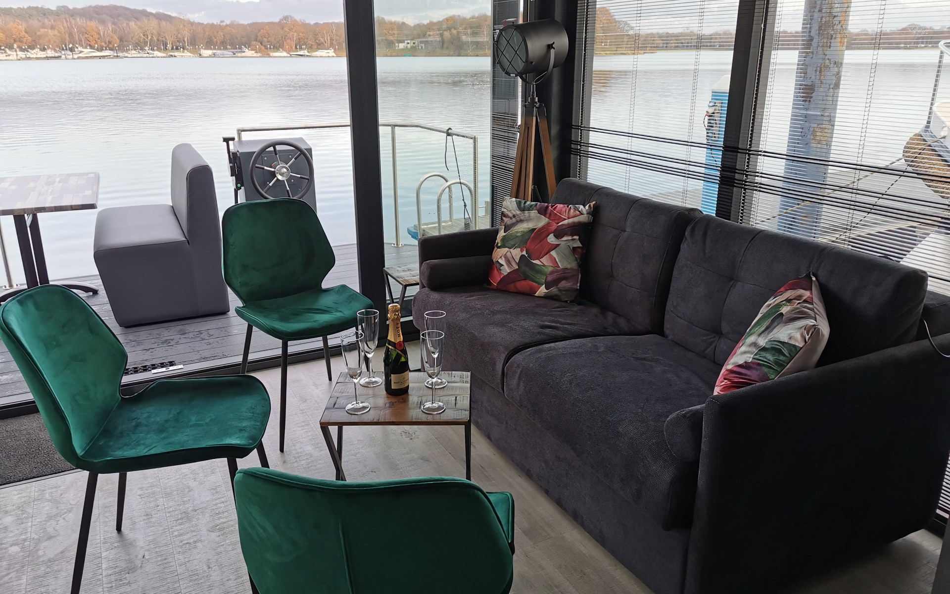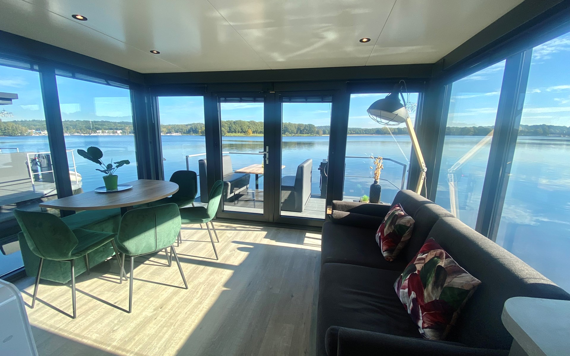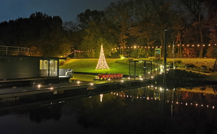 Erleben Sie den Charme eines komfortablen Hausbootes, idyllisch gelegen am malerischen Mookerplas und umgeben von einer waldreichen Landschaft. Das Highlight: der schwimmende Hot Tub auf einem Floß direkt neben dem Hausboot – warm, stimmungsvoll, gefüllt mit natürlichem Wasser und exklusiv für Sie. Ob laue Sommerabende mit Sonnenuntergang oder frische Winterluft – im Hot Tub genießen Sie pure Entspannung mitten in der Natur.