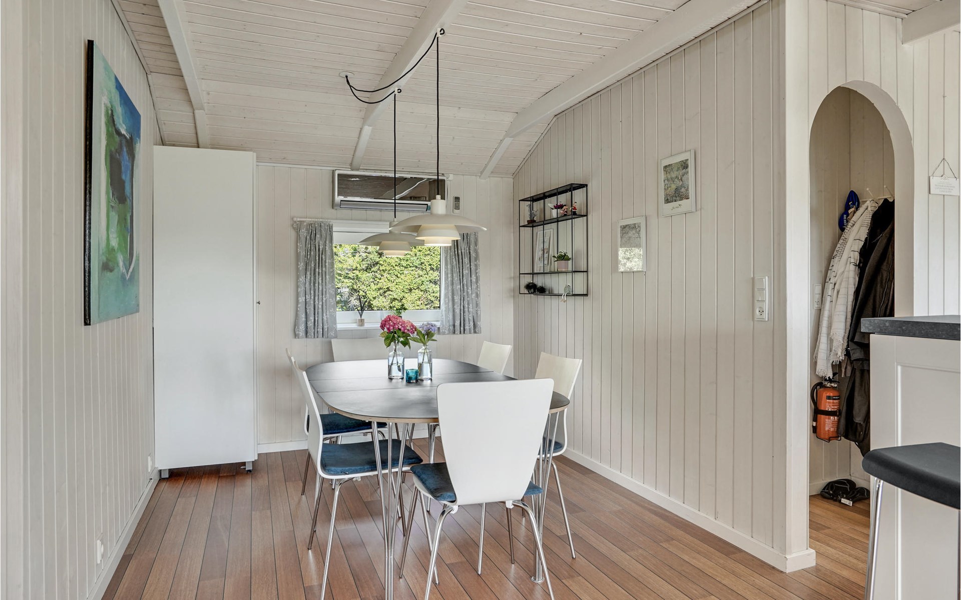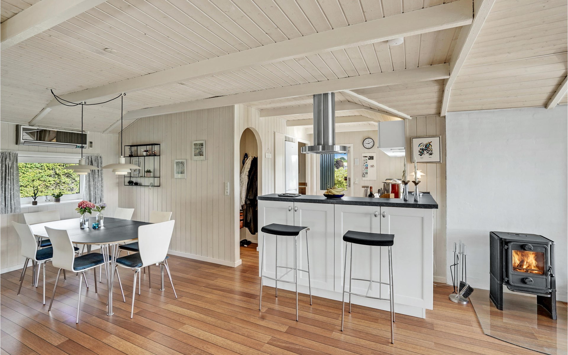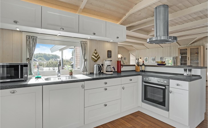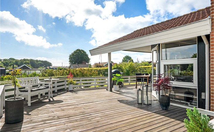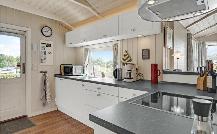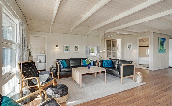 Mitten in Hejlsmindes Ferienhausgebiet Trappedal gelegenes, attraktives Haus. 2015 wurde das Haus komplett renoviert. Die Einrichtung der Küche ist modern mit einer guten Tiichplatte. Küche und Wohnraum liegen in offener Verbindung. Der Wohnraum ist in zeitlosem, nordischen Stil eingerichtet.